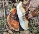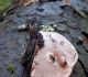Satrūdējusi kritala mežā, nav dēļi. Iespējams, egle, jauktu koku mežs.