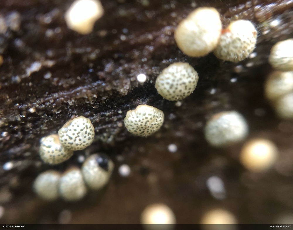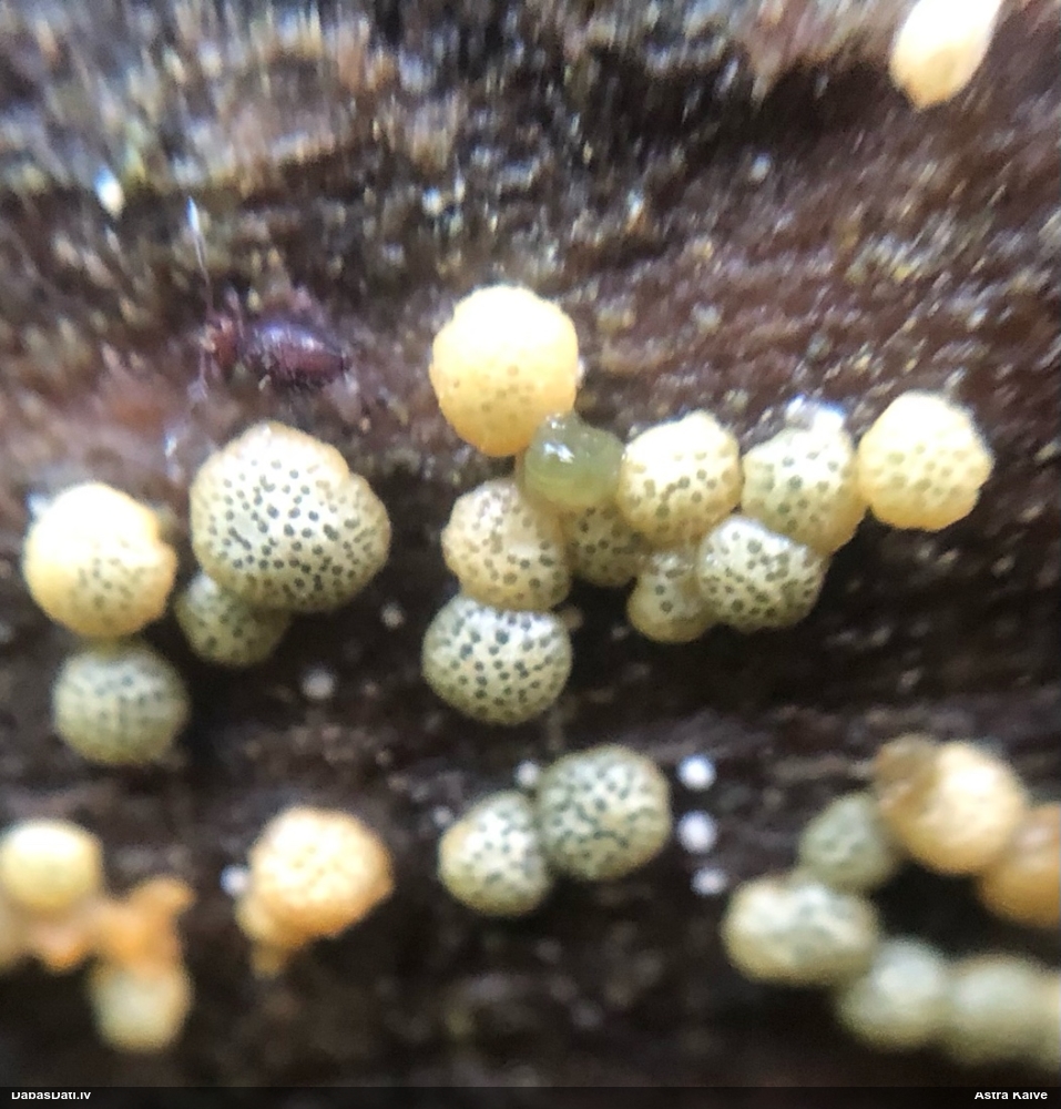 Paraudziņa nodošanas ātruma cena. Šis man nedeva mieru, jo sarežģīta (reta) suga bija noteikta tikai no ārējām pazīmēm. Un nemieram bija pamats - iekšējās pazīmes parādīja to, ko ārējās nevarēja (un no foto vien tāpat jaunu sugu neapstiprinātu). 2021. gadā bija pasaulē retās Diderma subviridifuscum uzlidojums. Pirmais pie manis nonāca Astras Kalves paraugs, no kura tika noteikta jauna suga LV, kuru Astra novēroja 8. oktobrī. Tad pie manis nonāca Ausmas Pirogas paraugs, kas bija novērots agrāk - 12. septembrī. Un tikai tagad man nonāca Tavs paraugs, kas bija novērots tā paša 2021. gada 7. septembrī - visagrāk no visiem trim, bet visvēlāk pie manis. Būtu uzreiz man nodevusi, būtu sugas atklājēja ;)