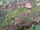 Satrūdējusi kritala mežā, nav dēļi. Iespējams, egle, jauktu koku mežs.