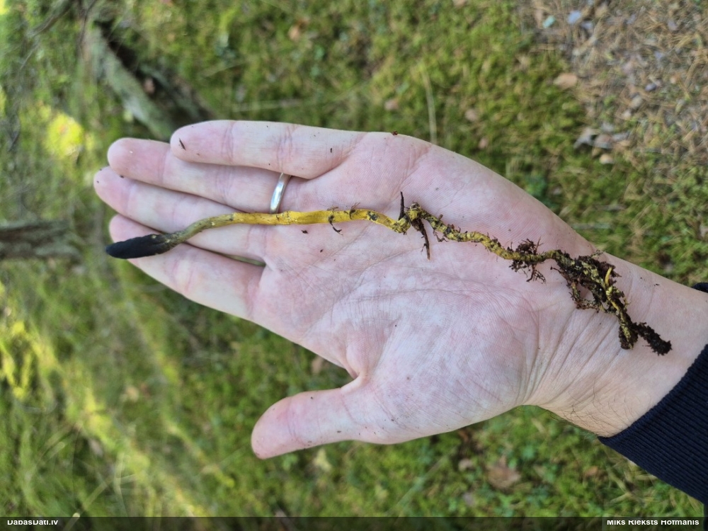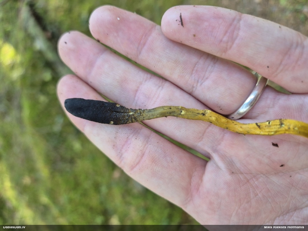 Vai tik nebūs medainā bumbulīte? Augļķermeņi vertikāli izstiepti, sporu mākonis ciešā klājienā.