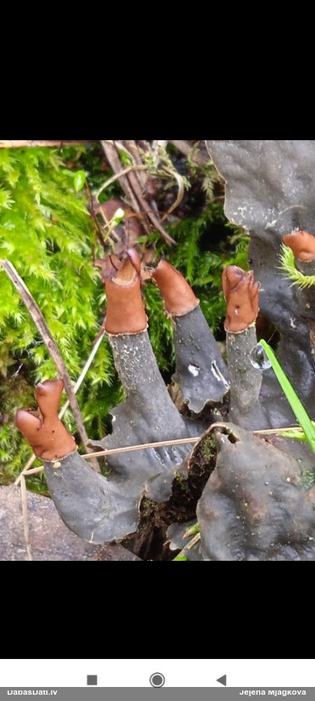 Tāds melnā tonis jau noformējušām bumbiņām nav raksturīgs mālkrāsas lākturītei C.argillacea, drīzāk tāds varētu būt pat jaunajai purpura lākturītei C.purpurea. Droši pateikt no šādas stadijas šobrīd es nevaru.
