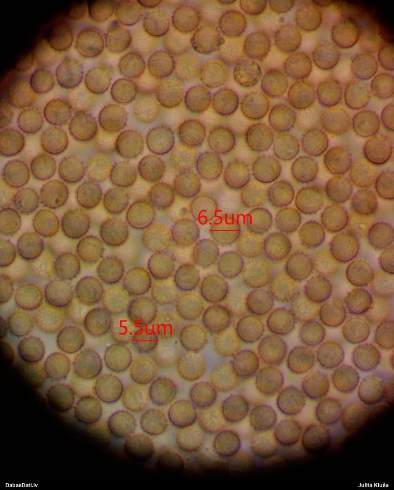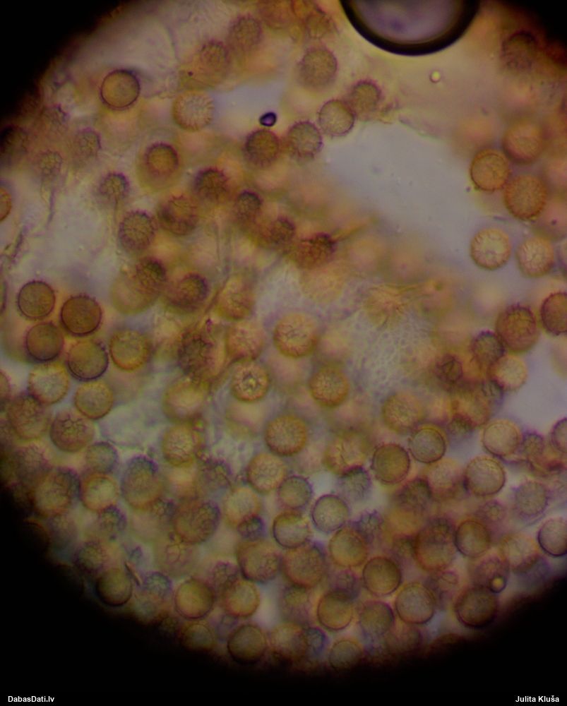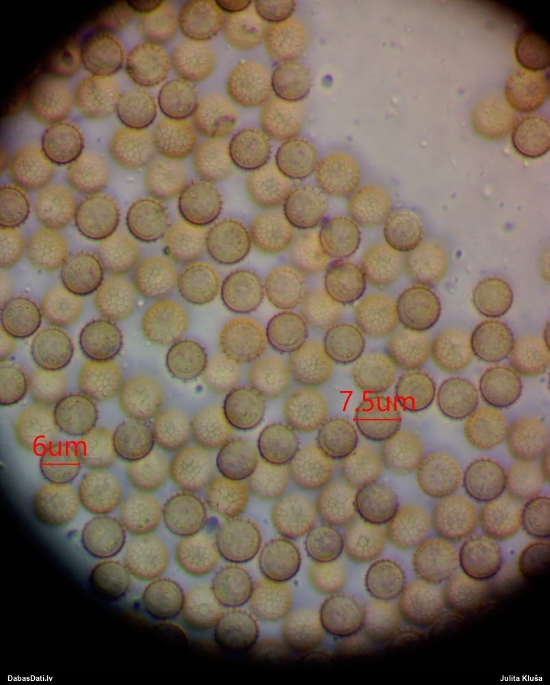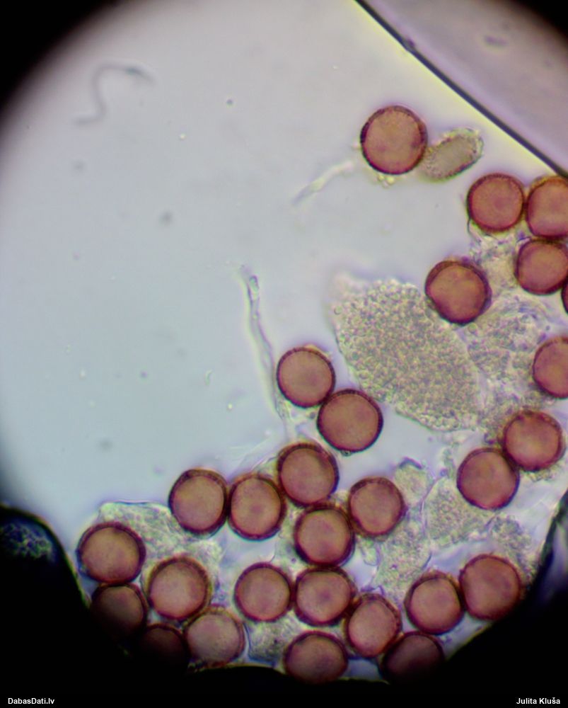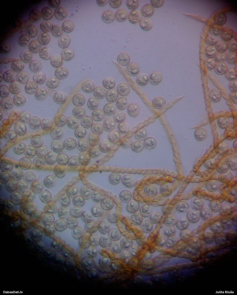 Sporas izskatās ļoti gaišas, varbūt nenobriedušas. Es laikam pēc kāda laiciņa mēģinātu vēlreiz mikroskopēt. Tajā pašā laikā sporu izmēri priekš T.contorta ir pamazi (ja tipiski ir 11-14 mkm, te ir knapi 11 mkm)