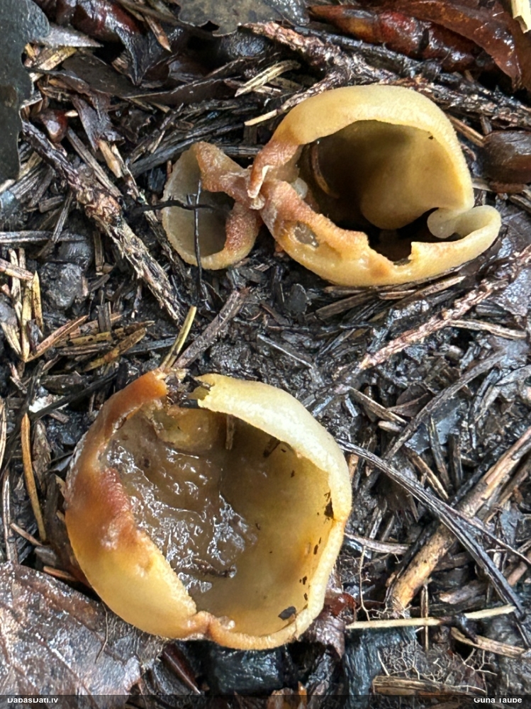 Tā ir tipiska pavasara sēne (ne gļotsēne), tikai uzreiz neatceros nosaukumu, ja vien tur tagad nebija vairāki varianti iespējami