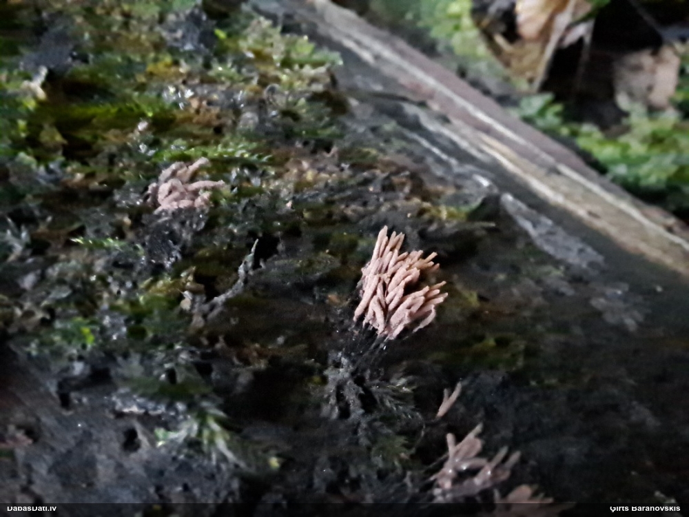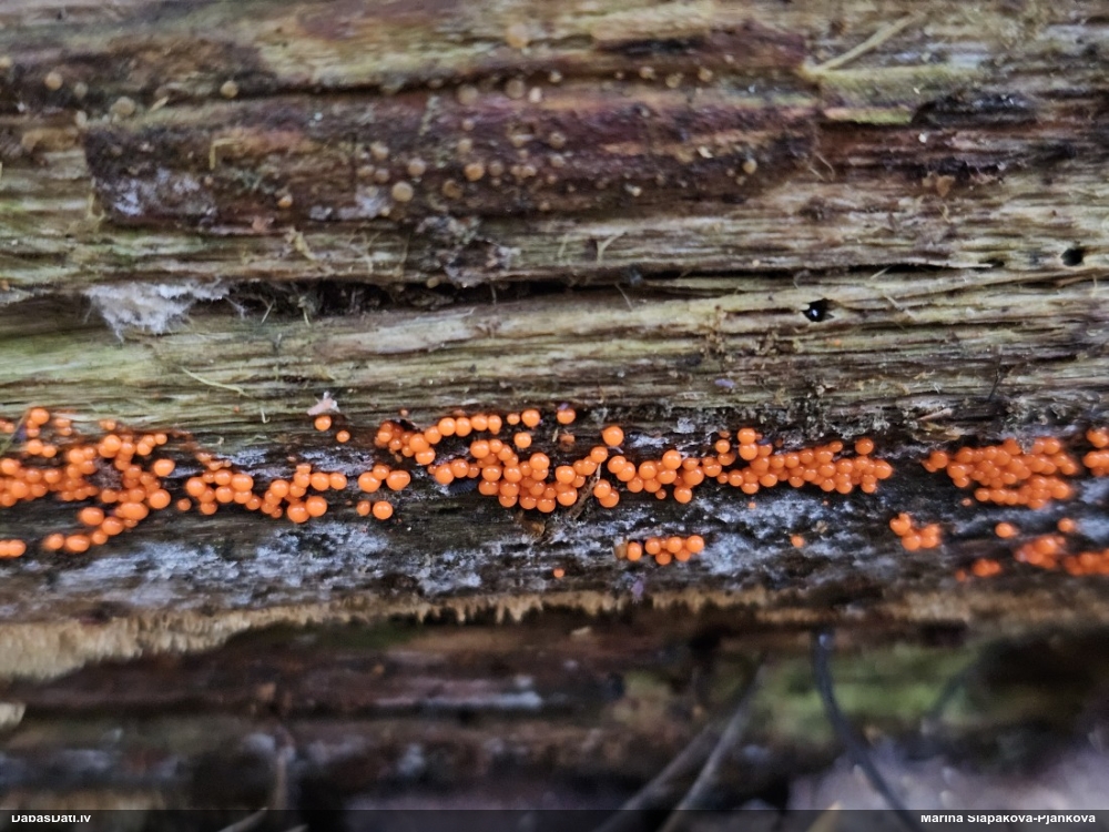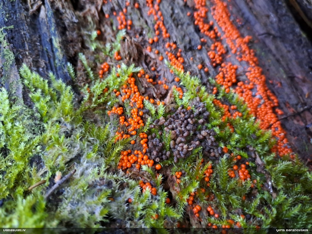 Šobrīd divas versijas - Physarum psittacinum un P.braunianum. Bez paraudziņa te skaidrīzā netiks, bet biotops interesants