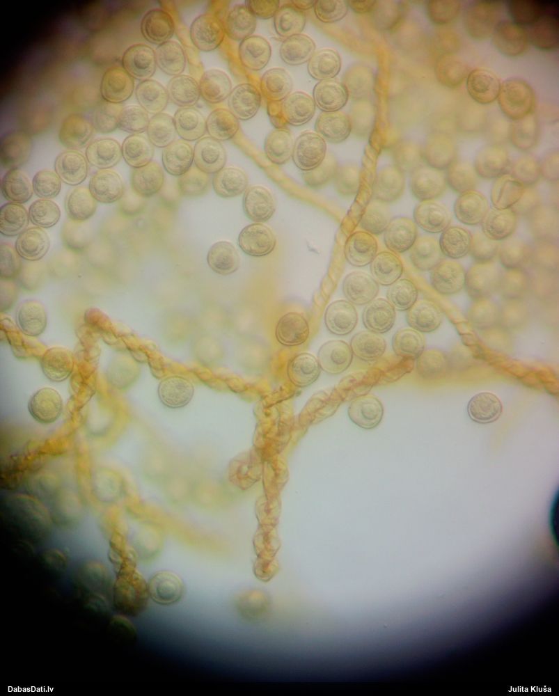 Sporas izskatās ļoti gaišas, varbūt nenobriedušas. Es laikam pēc kāda laiciņa mēģinātu vēlreiz mikroskopēt. Tajā pašā laikā sporu izmēri priekš T.contorta ir pamazi (ja tipiski ir 11-14 mkm, te ir knapi 11 mkm)