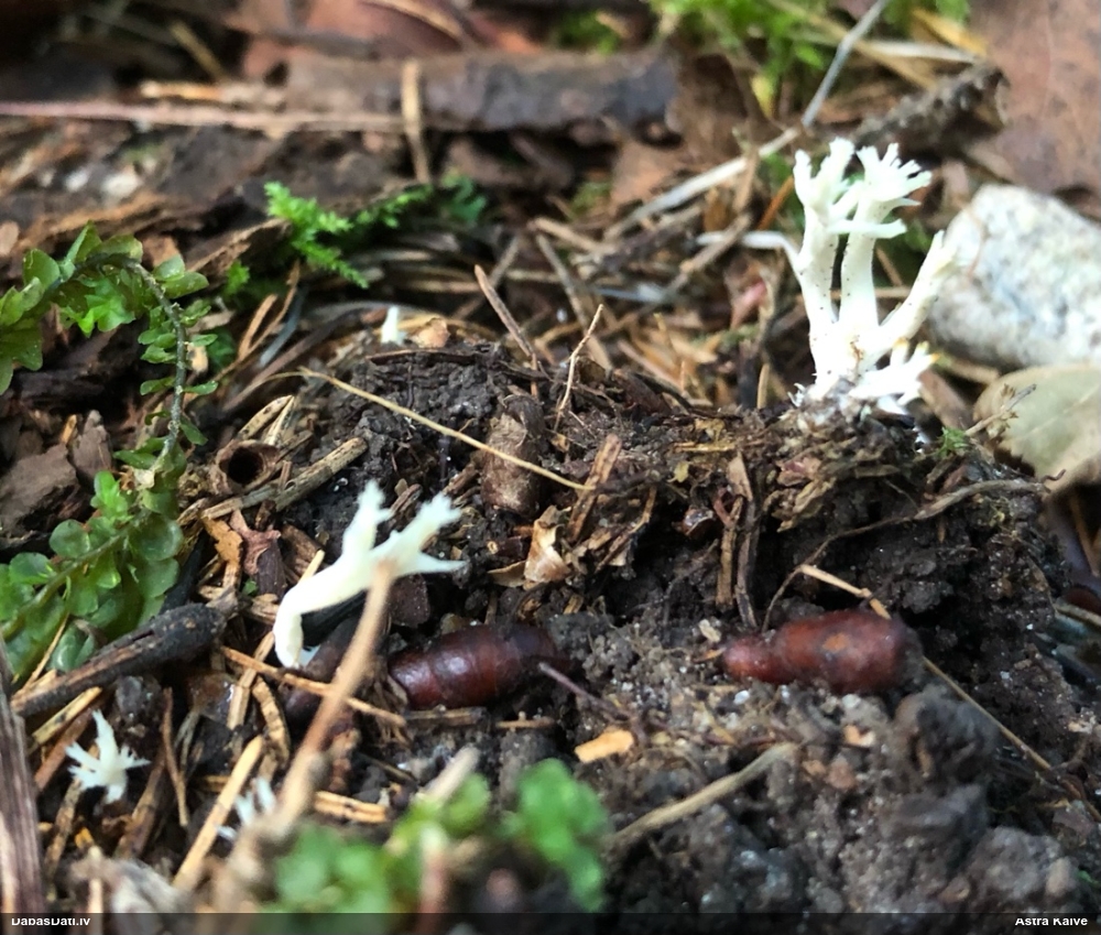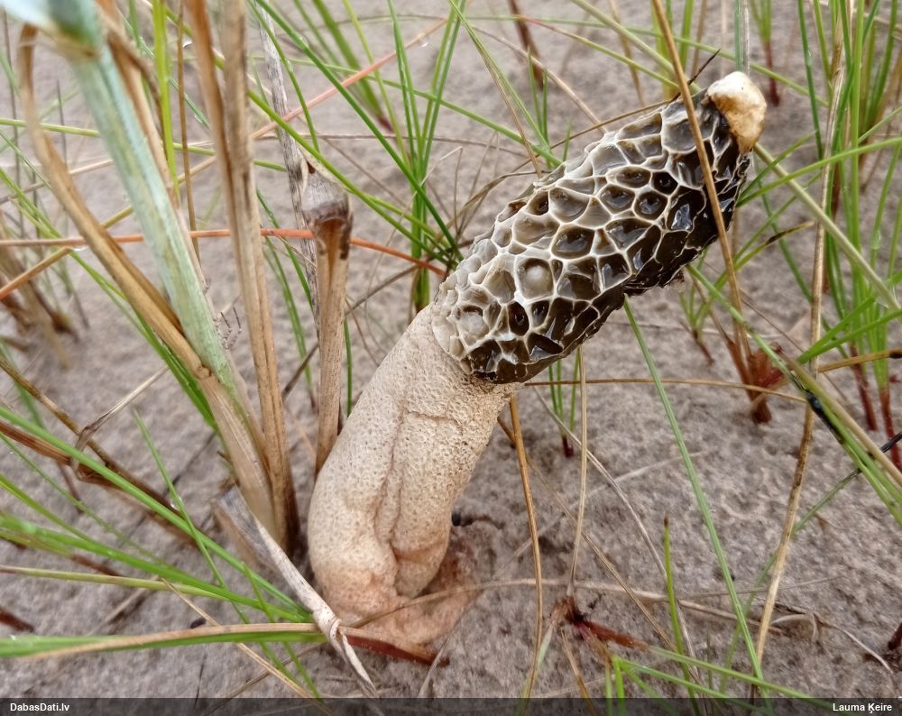 Vai tik nebūs medainā bumbulīte? Augļķermeņi vertikāli izstiepti, sporu mākonis ciešā klājienā.