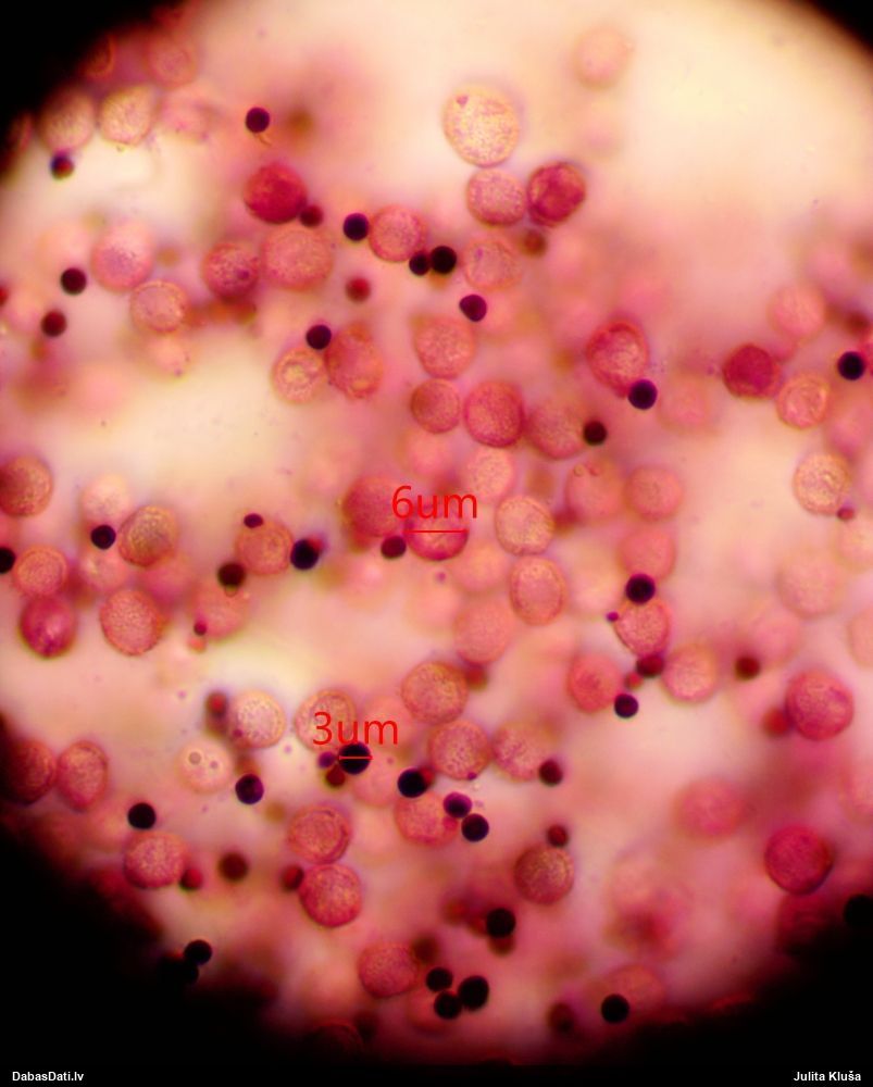 Sporas izskatās ļoti gaišas, varbūt nenobriedušas. Es laikam pēc kāda laiciņa mēģinātu vēlreiz mikroskopēt. Tajā pašā laikā sporu izmēri priekš T.contorta ir pamazi (ja tipiski ir 11-14 mkm, te ir knapi 11 mkm)