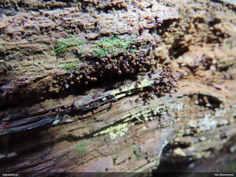 Šobrīd divas versijas - Physarum psittacinum un P.braunianum. Bez paraudziņa te skaidrīzā netiks, bet biotops interesants