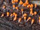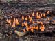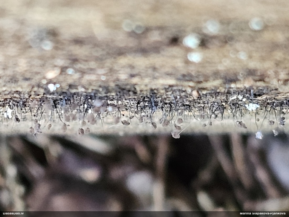 Vai tik nebūs medainā bumbulīte? Augļķermeņi vertikāli izstiepti, sporu mākonis ciešā klājienā.