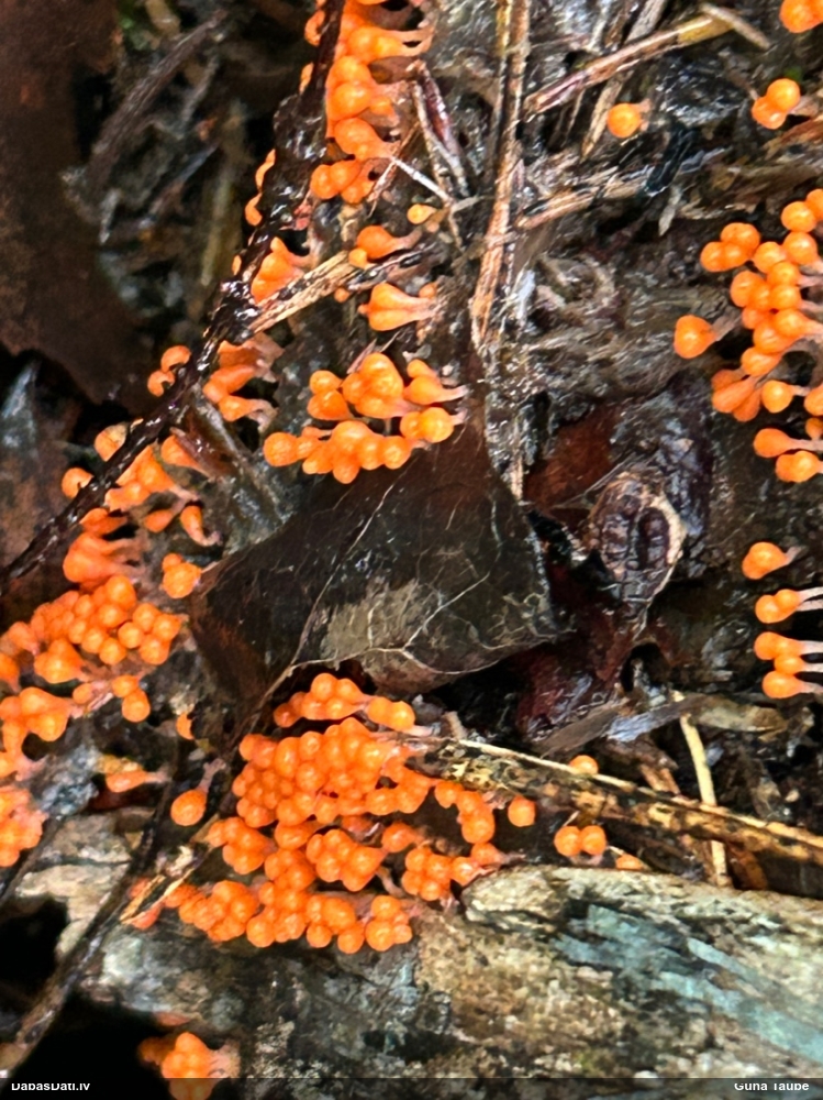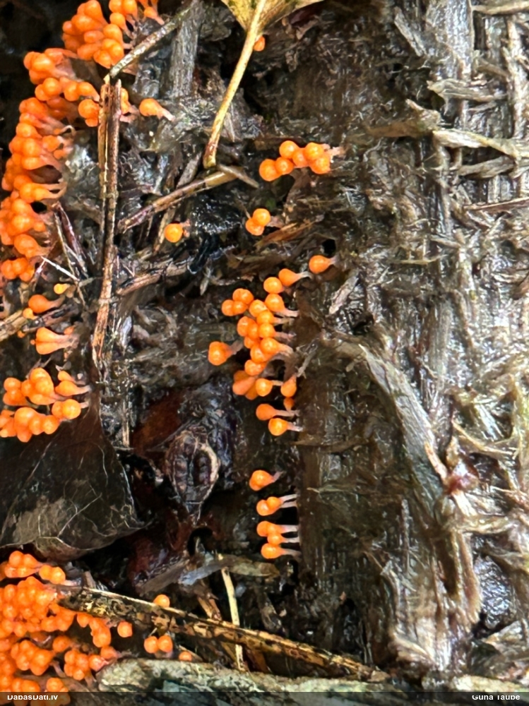 Šobrīd divas versijas - Physarum psittacinum un P.braunianum. Bez paraudziņa te skaidrīzā netiks, bet biotops interesants