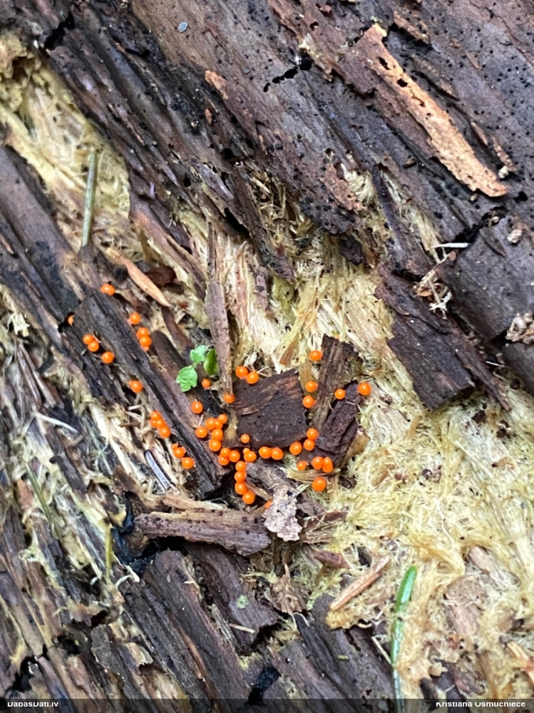 Šobrīd divas versijas - Physarum psittacinum un P.braunianum. Bez paraudziņa te skaidrīzā netiks, bet biotops interesants