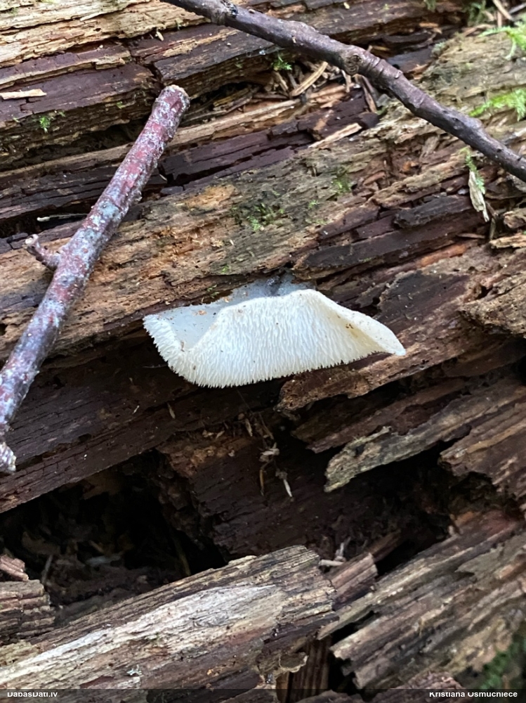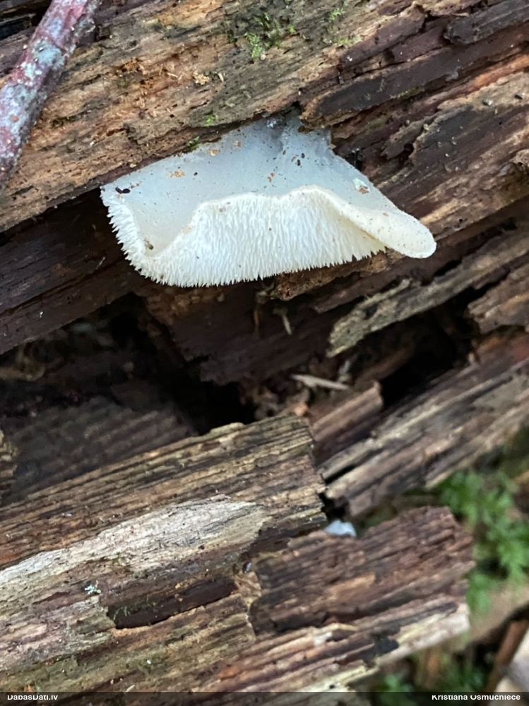 Satrūdējusi kritala mežā, nav dēļi. Iespējams, egle, jauktu koku mežs.