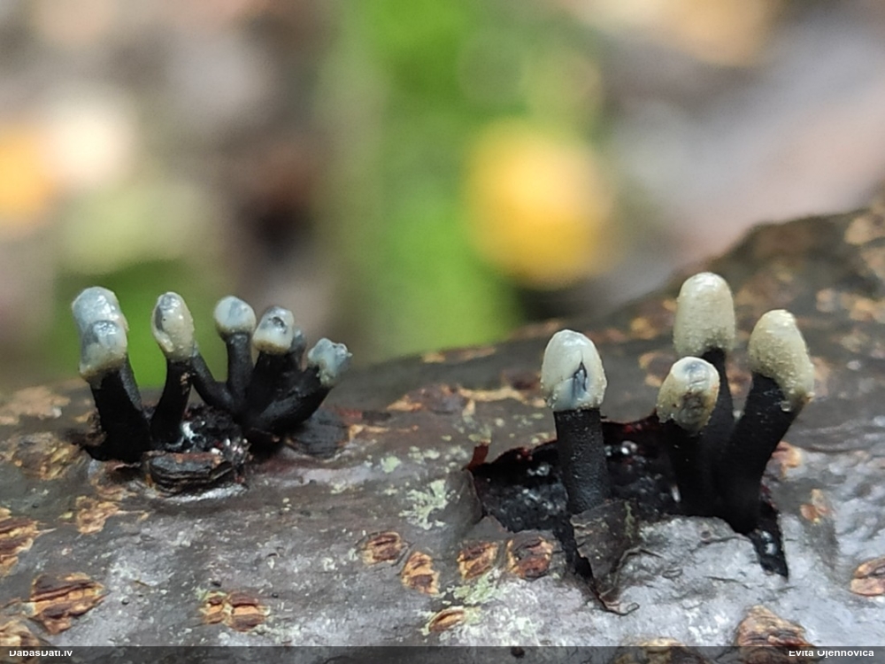 Vai tik nebūs medainā bumbulīte? Augļķermeņi vertikāli izstiepti, sporu mākonis ciešā klājienā.