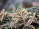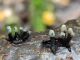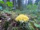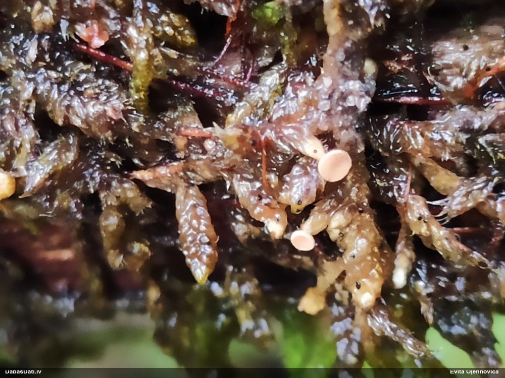 Man pēkšņi radās ideja - vai tur bija nu ļoti mitrs mikroklimats, egle ar melnalksni? Hipotētiski tādas dzeltenas var būt Diachea muscorum. Te bilde ir mazliet līdzīga: https://fr.wikipedia.org/wiki/Fichier:Craterium_muscorum,_Trawscoed,_North_Wales,_Aug_2016_-_Flickr_-_janetgraham84.jpg