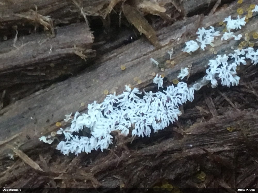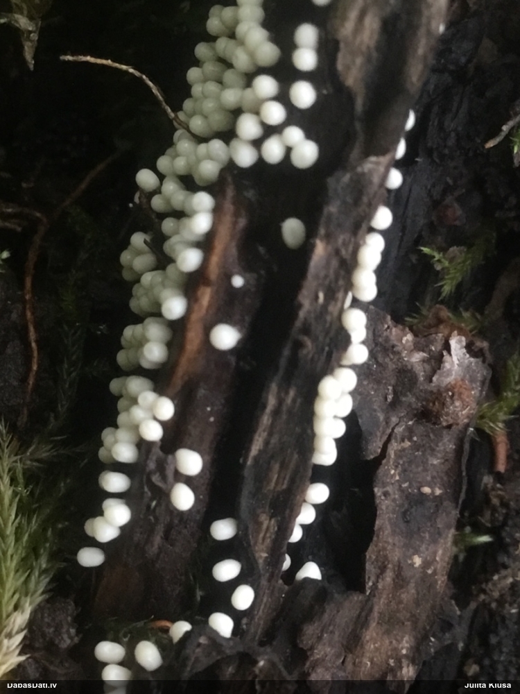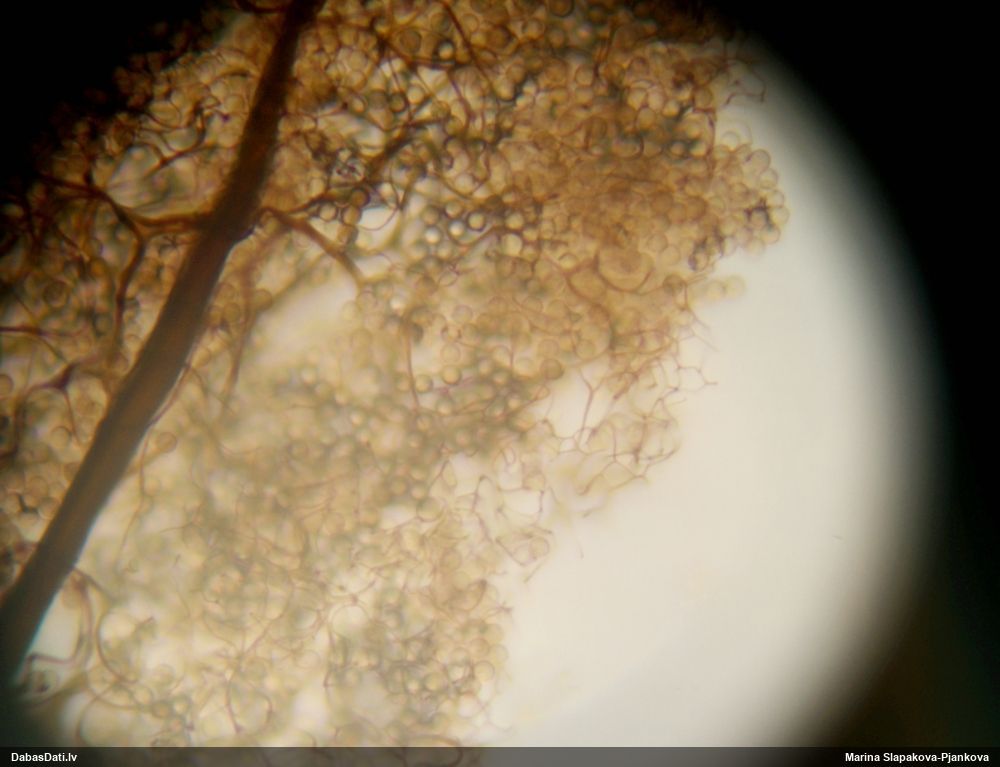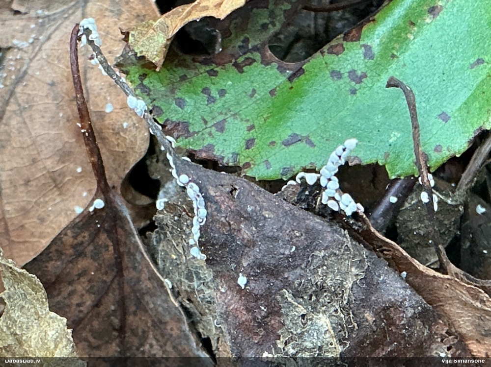 Paraudziņa nodošanas ātruma cena. Šis man nedeva mieru, jo sarežģīta (reta) suga bija noteikta tikai no ārējām pazīmēm. Un nemieram bija pamats - iekšējās pazīmes parādīja to, ko ārējās nevarēja (un no foto vien tāpat jaunu sugu neapstiprinātu). 2021. gadā bija pasaulē retās Diderma subviridifuscum uzlidojums. Pirmais pie manis nonāca Astras Kalves paraugs, no kura tika noteikta jauna suga LV, kuru Astra novēroja 8. oktobrī. Tad pie manis nonāca Ausmas Pirogas paraugs, kas bija novērots agrāk - 12. septembrī. Un tikai tagad man nonāca Tavs paraugs, kas bija novērots tā paša 2021. gada 7. septembrī - visagrāk no visiem trim, bet visvēlāk pie manis. Būtu uzreiz man nodevusi, būtu sugas atklājēja ;)