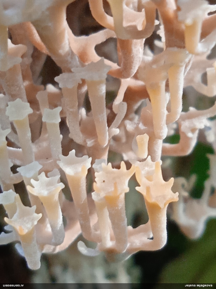 Vai tik nebūs medainā bumbulīte? Augļķermeņi vertikāli izstiepti, sporu mākonis ciešā klājienā.