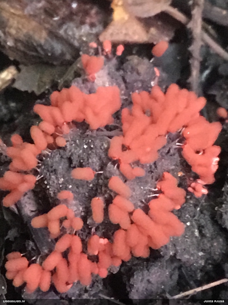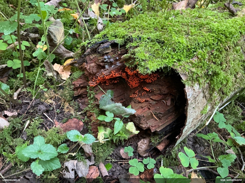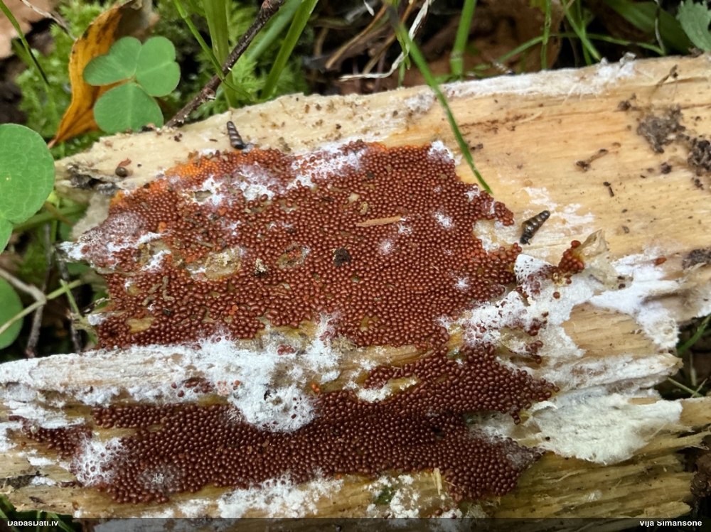 Šobrīd divas versijas - Physarum psittacinum un P.braunianum. Bez paraudziņa te skaidrīzā netiks, bet biotops interesants