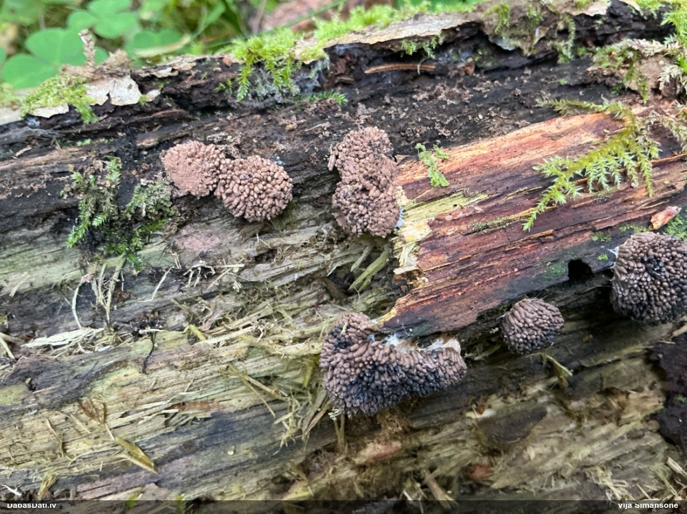 Cukurīte (Didymium) vai pumpurīte (Physarum)? Man galviņas virsma šķiet vairāk kā cukurītei, bet uz sēnes .. pieredze ar pumpurītēm.