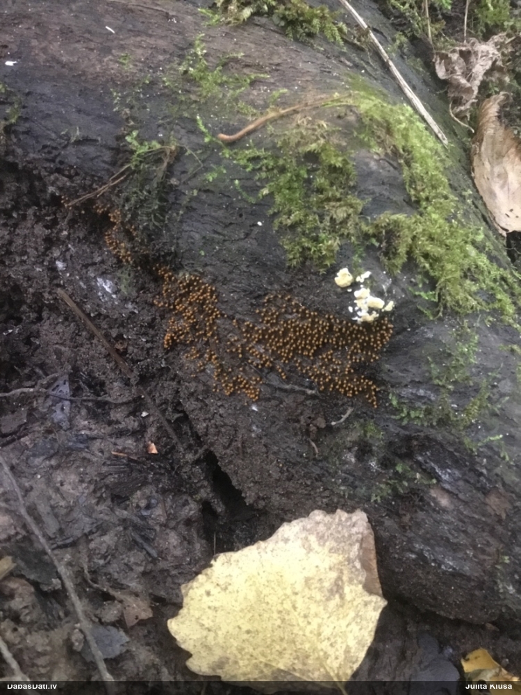 Paraudziņa nodošanas ātruma cena. Šis man nedeva mieru, jo sarežģīta (reta) suga bija noteikta tikai no ārējām pazīmēm. Un nemieram bija pamats - iekšējās pazīmes parādīja to, ko ārējās nevarēja (un no foto vien tāpat jaunu sugu neapstiprinātu). 2021. gadā bija pasaulē retās Diderma subviridifuscum uzlidojums. Pirmais pie manis nonāca Astras Kalves paraugs, no kura tika noteikta jauna suga LV, kuru Astra novēroja 8. oktobrī. Tad pie manis nonāca Ausmas Pirogas paraugs, kas bija novērots agrāk - 12. septembrī. Un tikai tagad man nonāca Tavs paraugs, kas bija novērots tā paša 2021. gada 7. septembrī - visagrāk no visiem trim, bet visvēlāk pie manis. Būtu uzreiz man nodevusi, būtu sugas atklājēja ;)