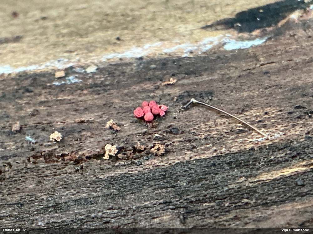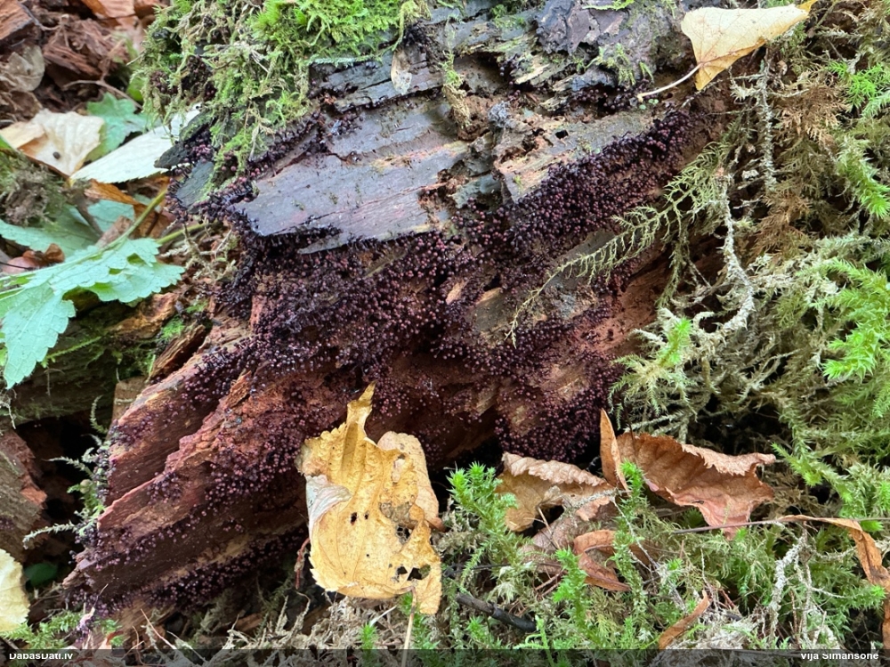 Šobrīd divas versijas - Physarum psittacinum un P.braunianum. Bez paraudziņa te skaidrīzā netiks, bet biotops interesants