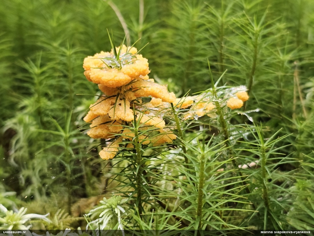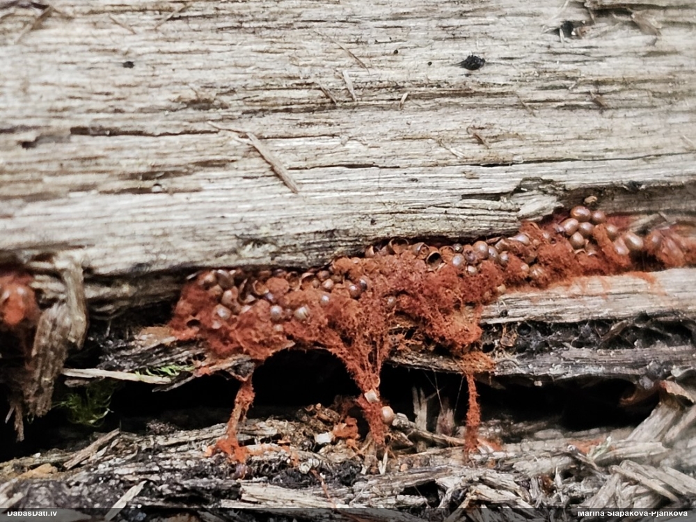 Šobrīd divas versijas - Physarum psittacinum un P.braunianum. Bez paraudziņa te skaidrīzā netiks, bet biotops interesants