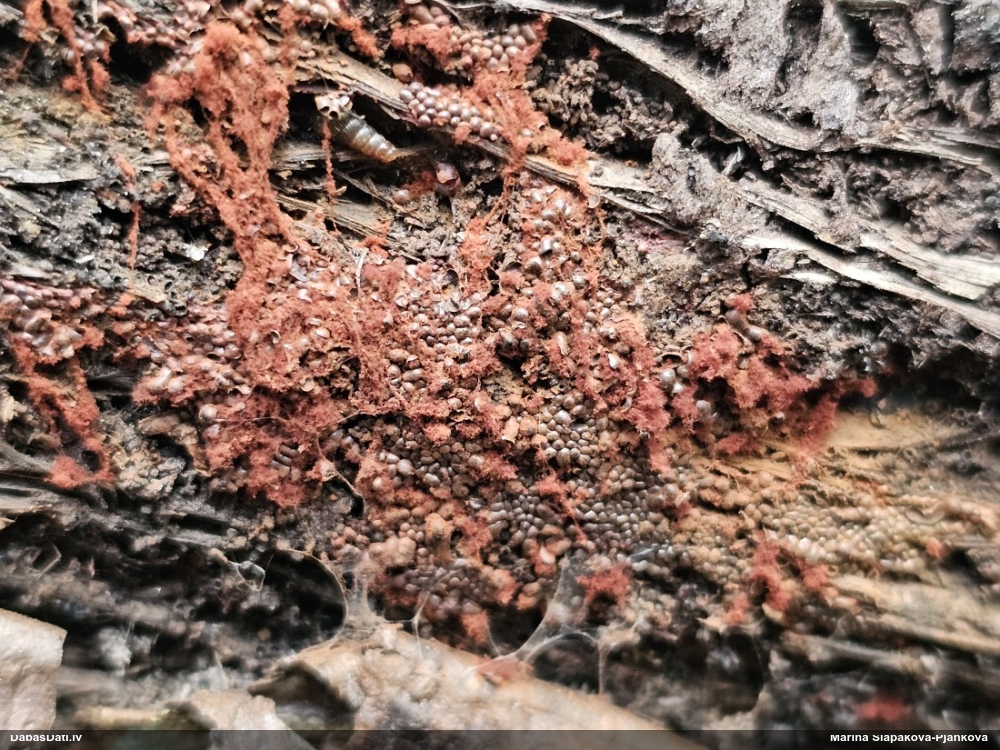 Kaut kāda kūniņa, bet grūti saprast - jāredz tuvāk. Katrā ziņā ne tīkllapsenes kūniņa. Kur atradās? Zem mizas?