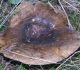 Satrūdējusi kritala mežā, nav dēļi. Iespējams, egle, jauktu koku mežs.