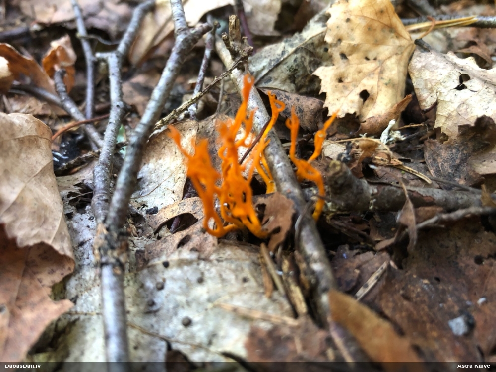 Vai tik nebūs medainā bumbulīte? Augļķermeņi vertikāli izstiepti, sporu mākonis ciešā klājienā.