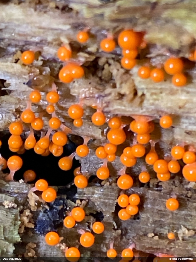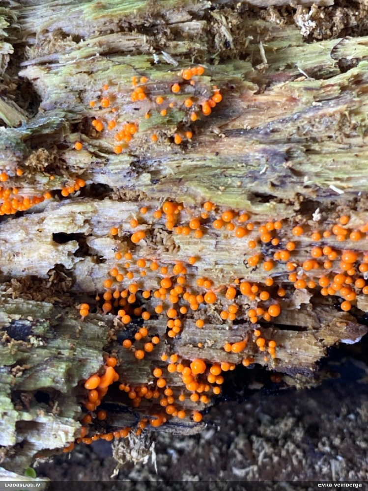 Šobrīd divas versijas - Physarum psittacinum un P.braunianum. Bez paraudziņa te skaidrīzā netiks, bet biotops interesants