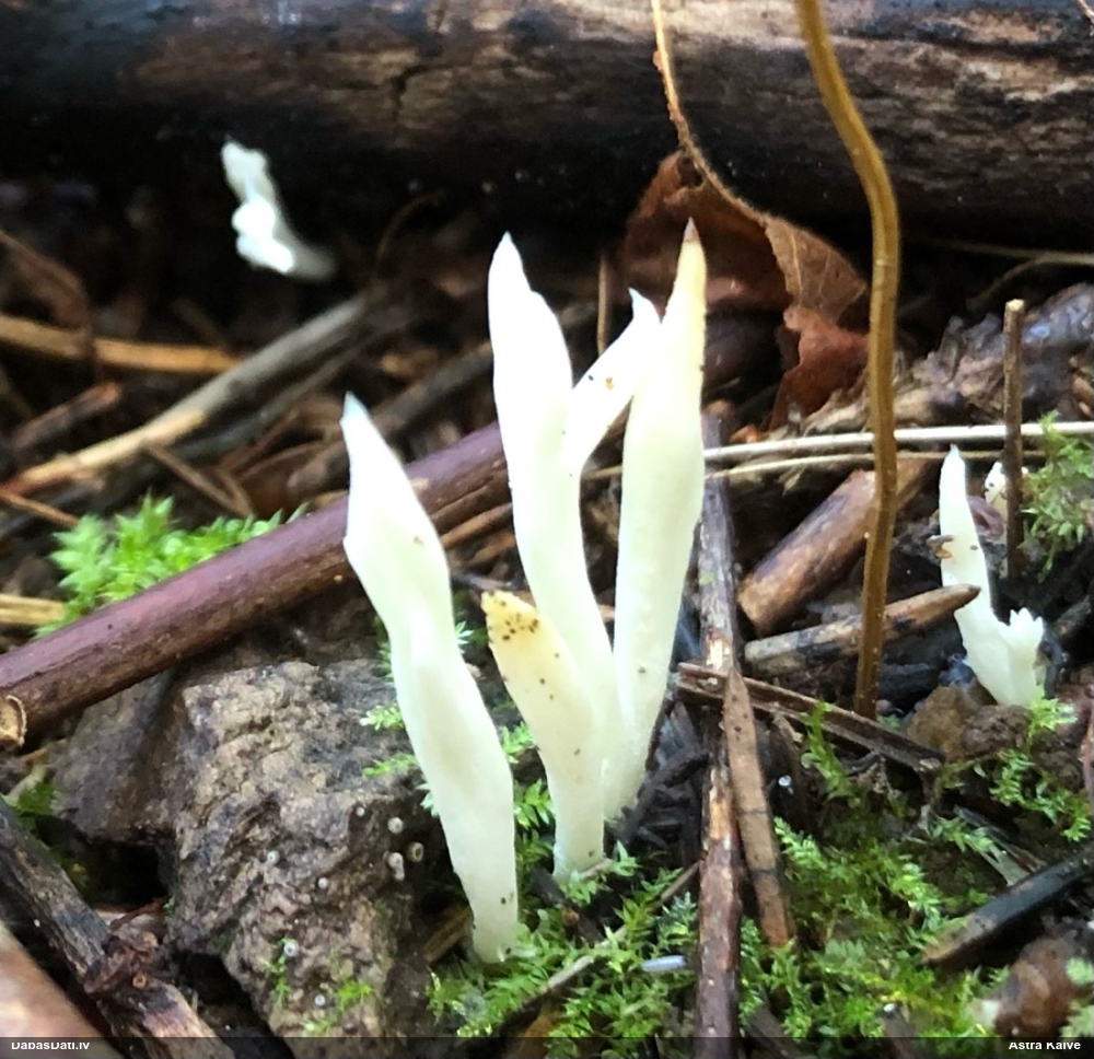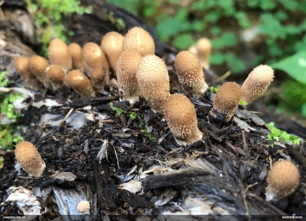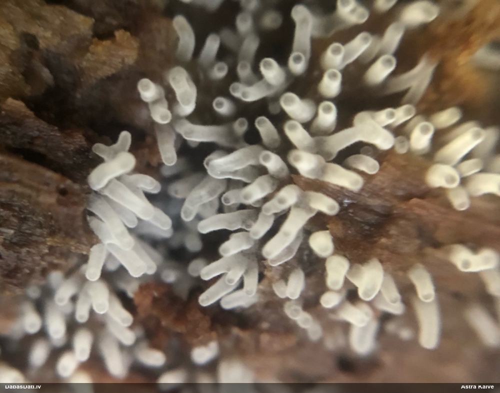 Vai tik nebūs medainā bumbulīte? Augļķermeņi vertikāli izstiepti, sporu mākonis ciešā klājienā.