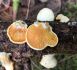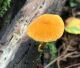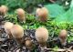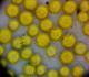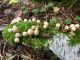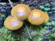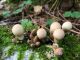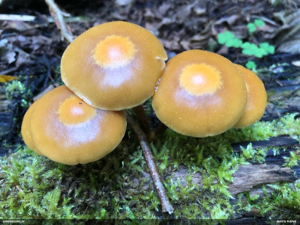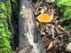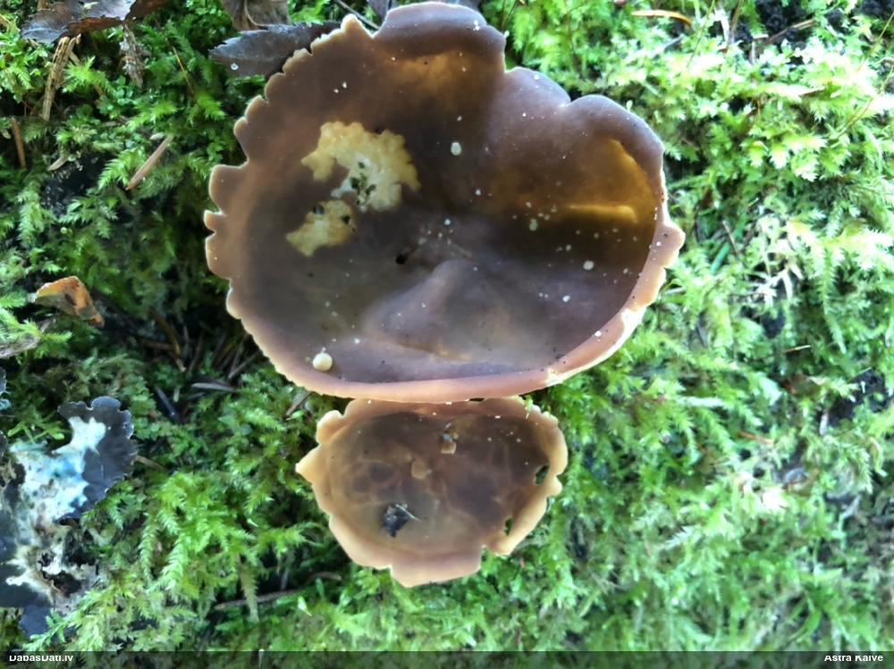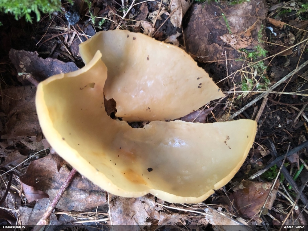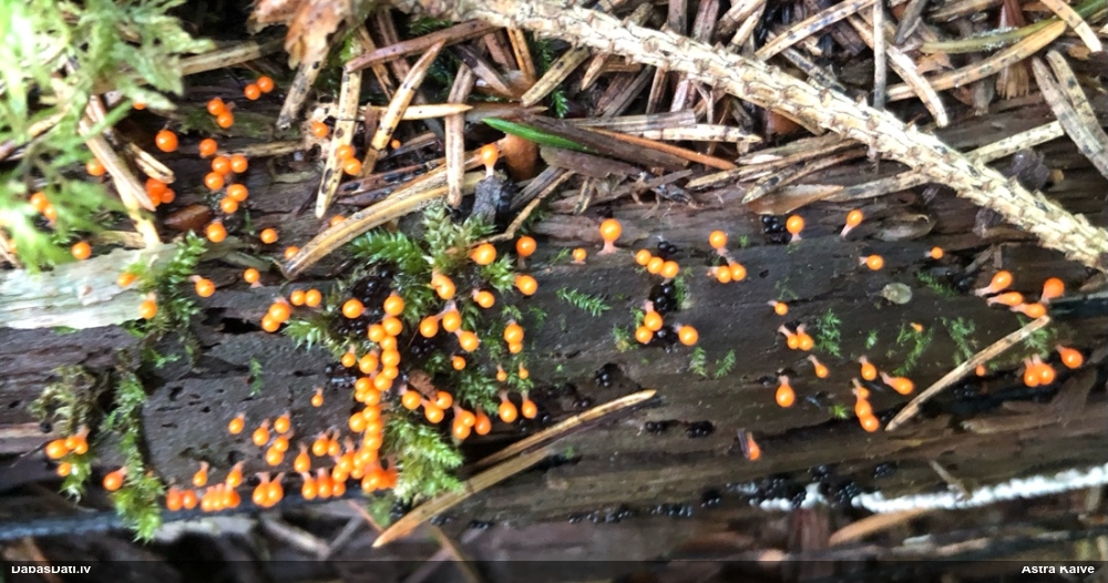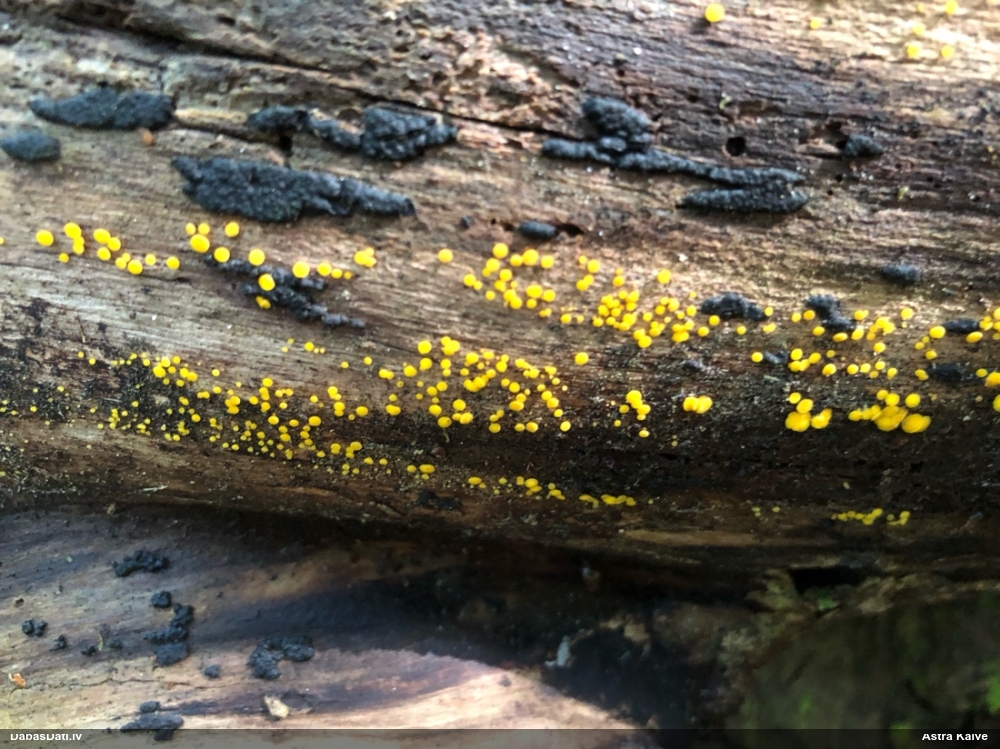 Man pēkšņi radās ideja - vai tur bija nu ļoti mitrs mikroklimats, egle ar melnalksni? Hipotētiski tādas dzeltenas var būt Diachea muscorum. Te bilde ir mazliet līdzīga: https://fr.wikipedia.org/wiki/Fichier:Craterium_muscorum,_Trawscoed,_North_Wales,_Aug_2016_-_Flickr_-_janetgraham84.jpg