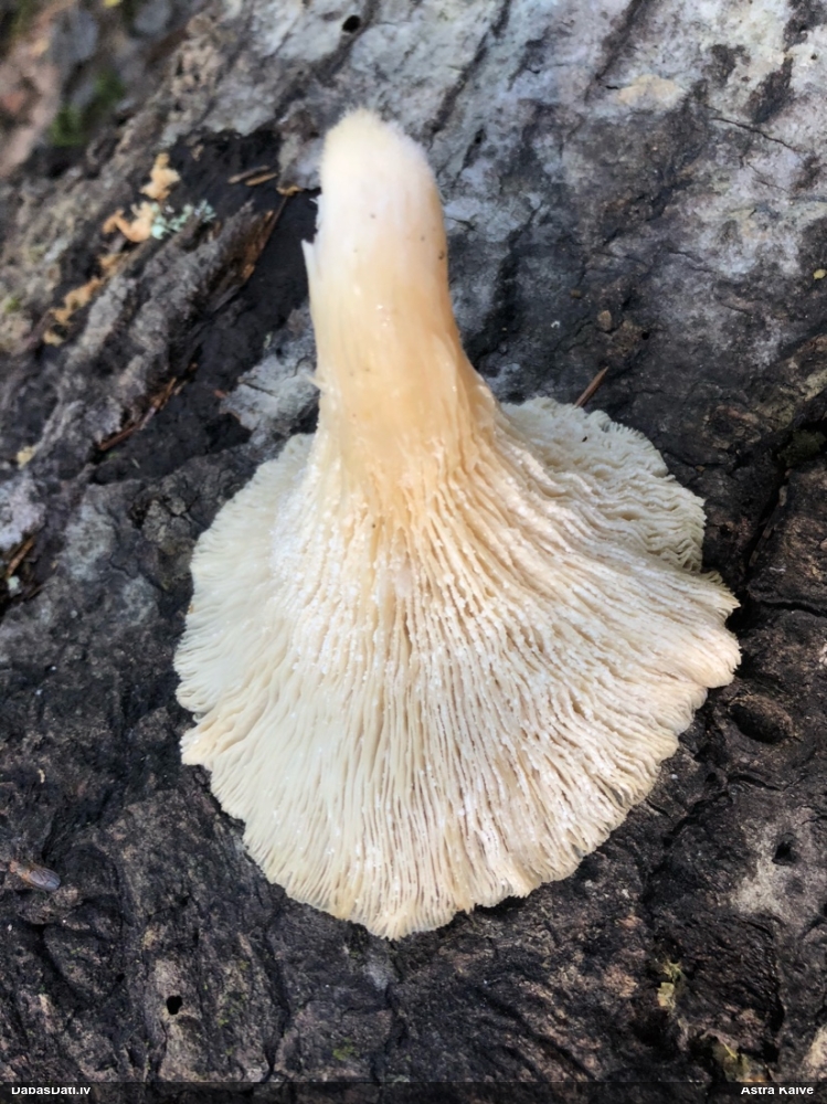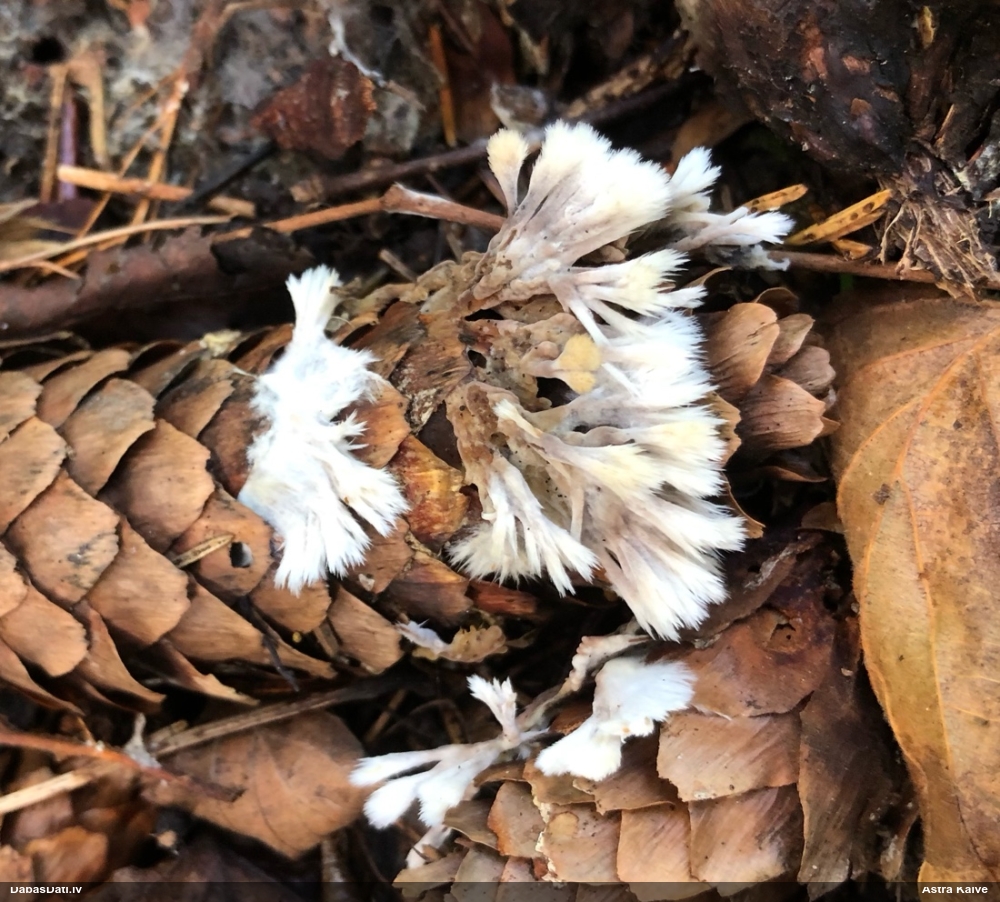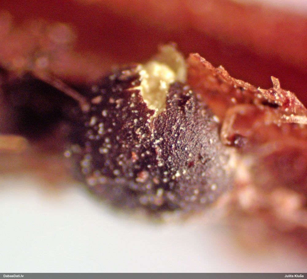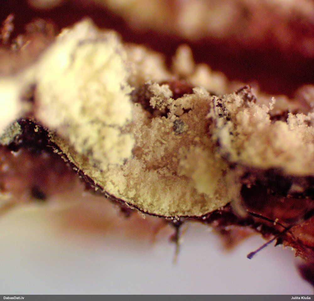 Liels paldies par paraugu! Mikroskopēju, viss kārtībā, kapilīcijs ir un suga pareiza. :) Un kā jau ir gadījies - tikko saņemu un apskatu paraugu, tā uzreiz ekspedīcijā izdodas atrast arī pašai (1 gab. augļķermeni :D). Ir pilnīgi droši, Raivo, bez Tava atraduma es arī nebūtu atradusi, jo uzmanību pievērsu, ka egle bija tieši tāda pati - slīpa un melna, tāpēc īpašs paldies par biotopa un substrāta bildēm! Kad ieraudzīju koka atbilstību, tad meklēju, kamēr atradu. :)