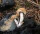 Satrūdējusi kritala mežā, nav dēļi. Iespējams, egle, jauktu koku mežs.