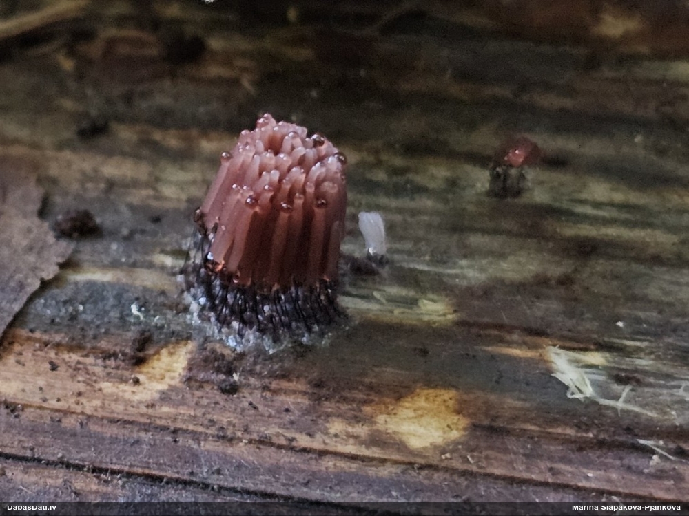 Cukurīte (Didymium) vai pumpurīte (Physarum)? Man galviņas virsma šķiet vairāk kā cukurītei, bet uz sēnes .. pieredze ar pumpurītēm.