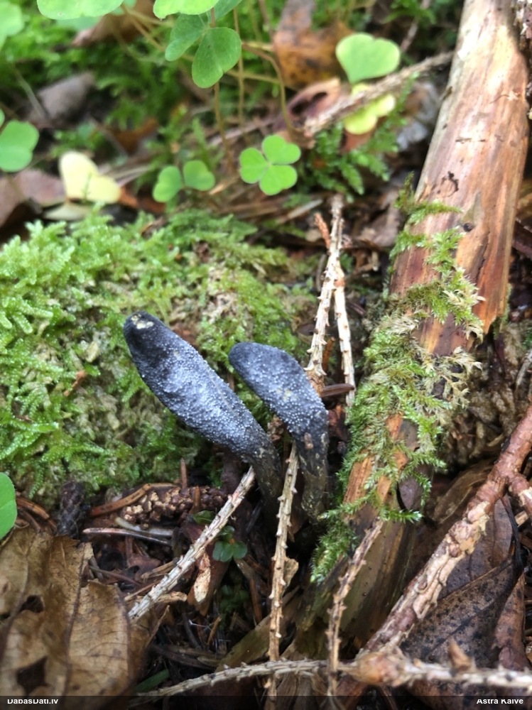 Vai tik nebūs medainā bumbulīte? Augļķermeņi vertikāli izstiepti, sporu mākonis ciešā klājienā.
