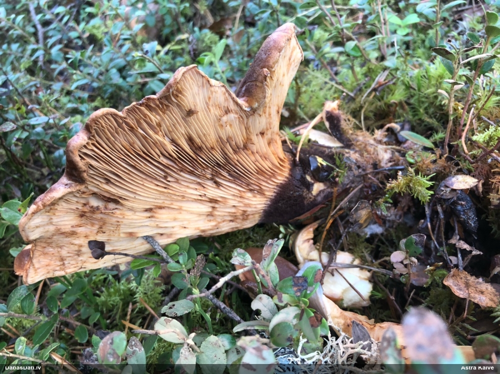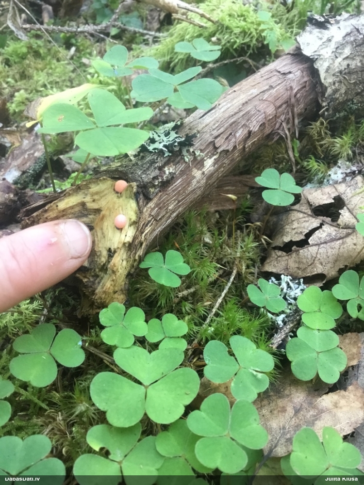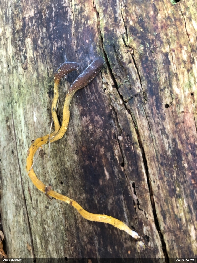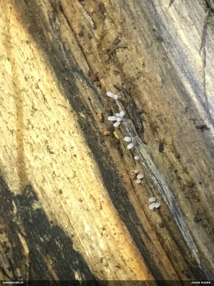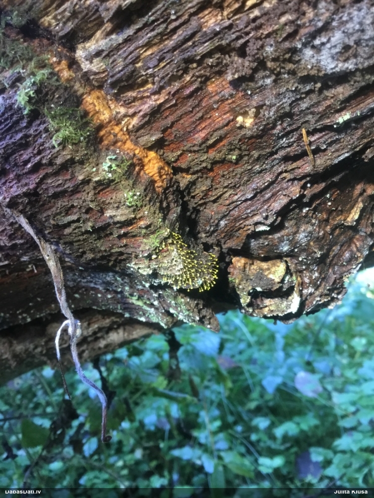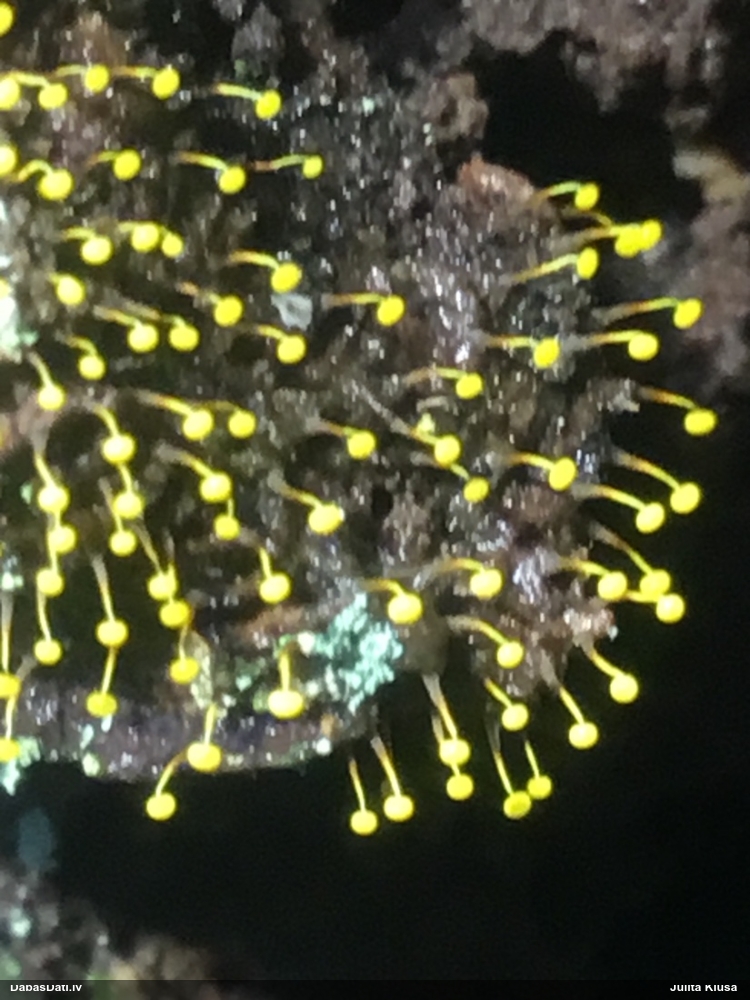 Liels paldies par paraugu! Mikroskopēju, viss kārtībā, kapilīcijs ir un suga pareiza. :) Un kā jau ir gadījies - tikko saņemu un apskatu paraugu, tā uzreiz ekspedīcijā izdodas atrast arī pašai (1 gab. augļķermeni :D). Ir pilnīgi droši, Raivo, bez Tava atraduma es arī nebūtu atradusi, jo uzmanību pievērsu, ka egle bija tieši tāda pati - slīpa un melna, tāpēc īpašs paldies par biotopa un substrāta bildēm! Kad ieraudzīju koka atbilstību, tad meklēju, kamēr atradu. :)