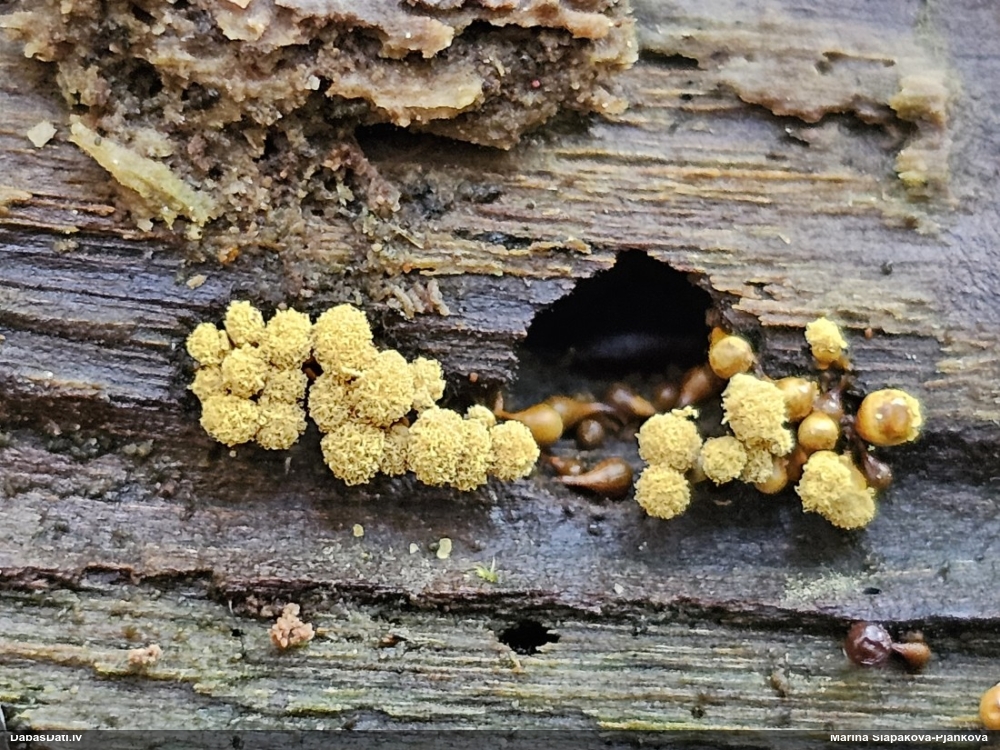 Ja uz apses kritalas, tad minētu, ka Physarum straminipes