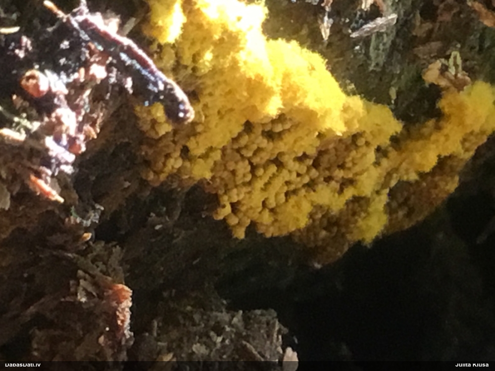 Šobrīd divas versijas - Physarum psittacinum un P.braunianum. Bez paraudziņa te skaidrīzā netiks, bet biotops interesants