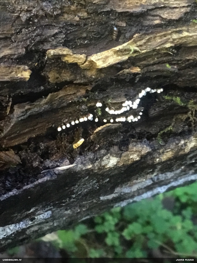 Jā, zem mizas uz nokaltušas priedes.