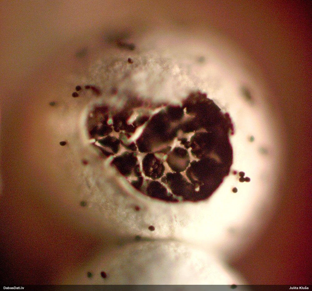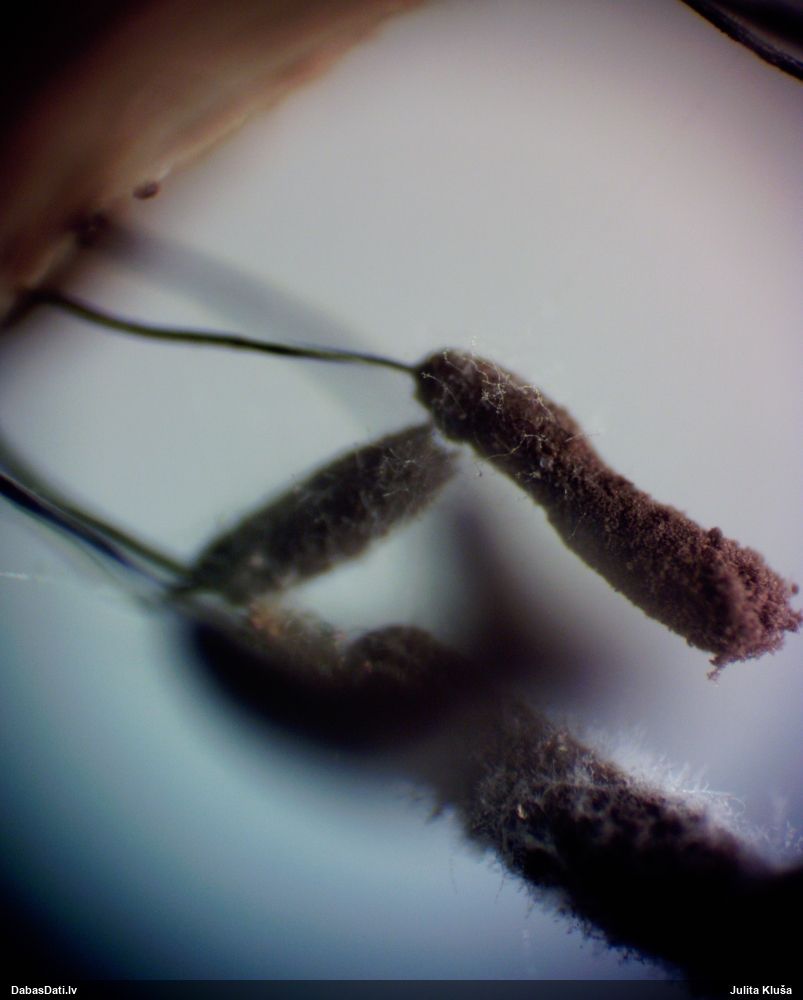 Liels paldies par paraugu! Mikroskopēju, viss kārtībā, kapilīcijs ir un suga pareiza. :) Un kā jau ir gadījies - tikko saņemu un apskatu paraugu, tā uzreiz ekspedīcijā izdodas atrast arī pašai (1 gab. augļķermeni :D). Ir pilnīgi droši, Raivo, bez Tava atraduma es arī nebūtu atradusi, jo uzmanību pievērsu, ka egle bija tieši tāda pati - slīpa un melna, tāpēc īpašs paldies par biotopa un substrāta bildēm! Kad ieraudzīju koka atbilstību, tad meklēju, kamēr atradu. :)