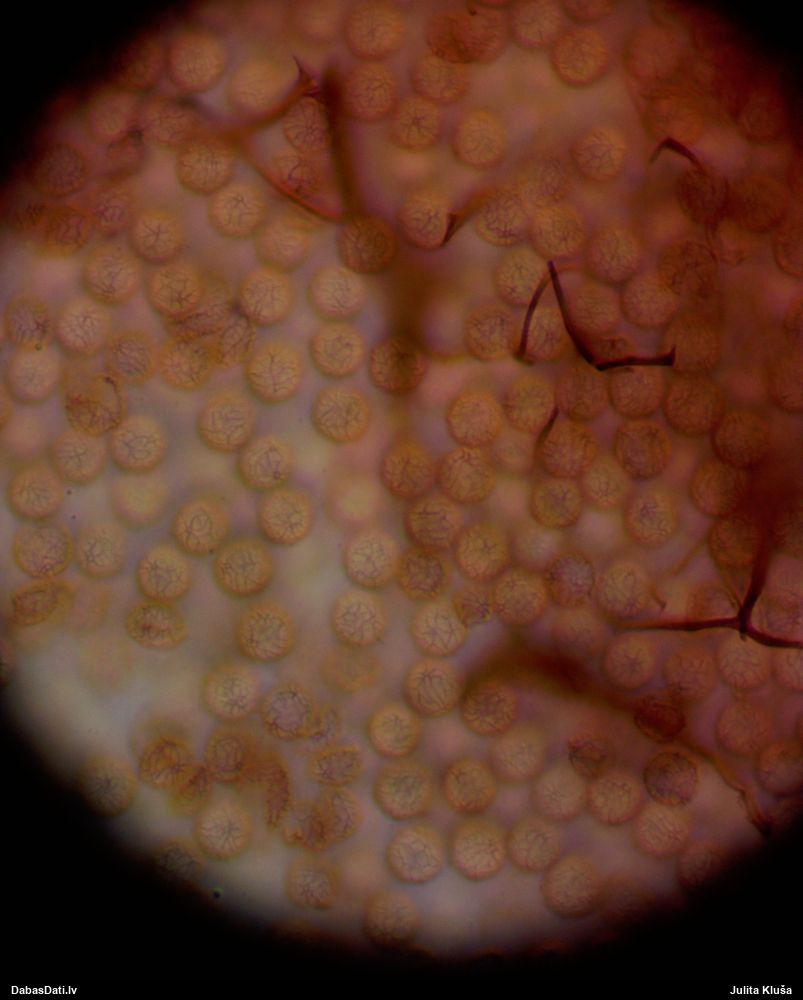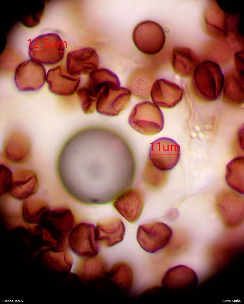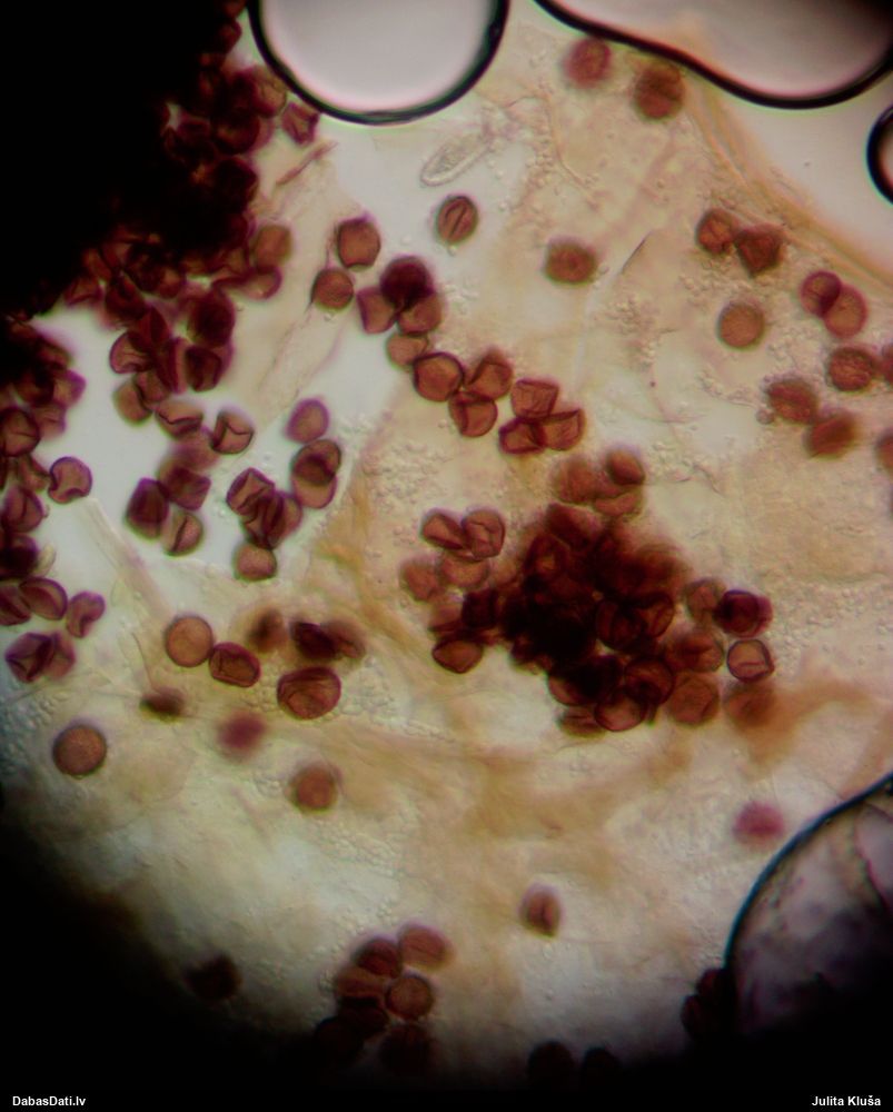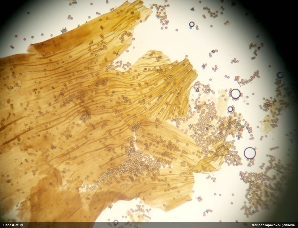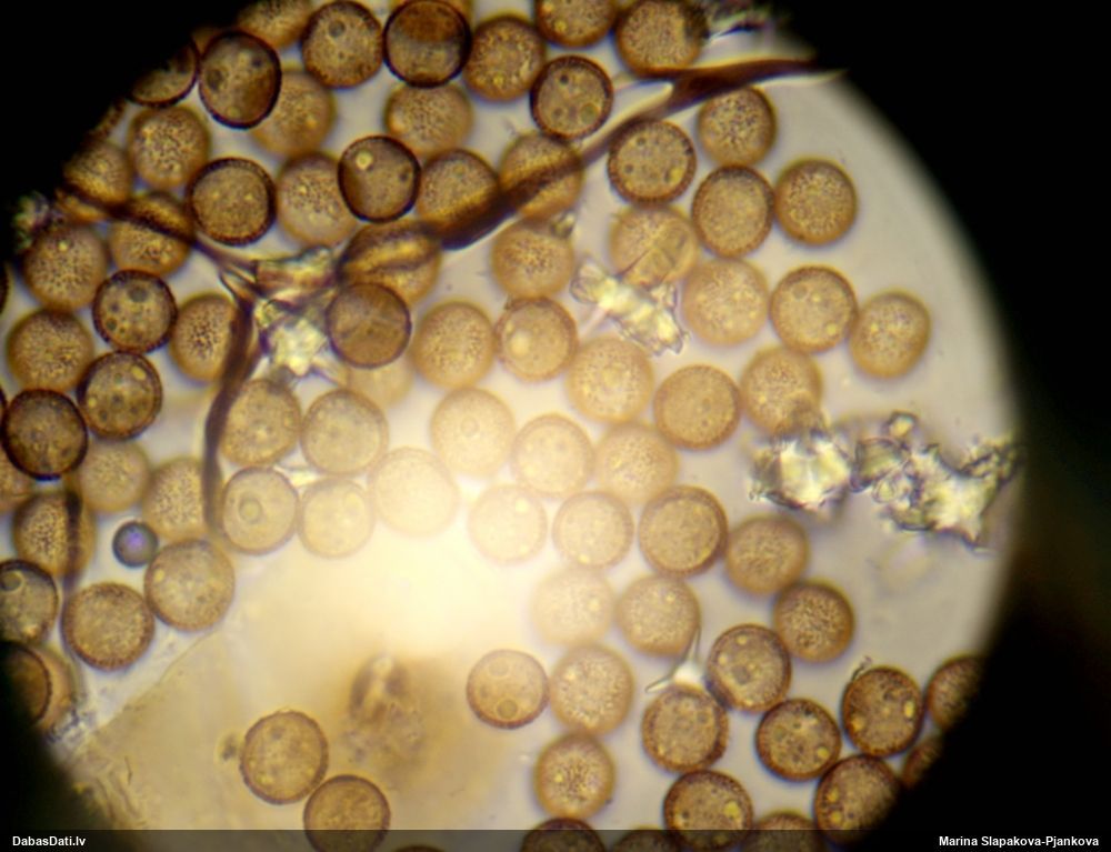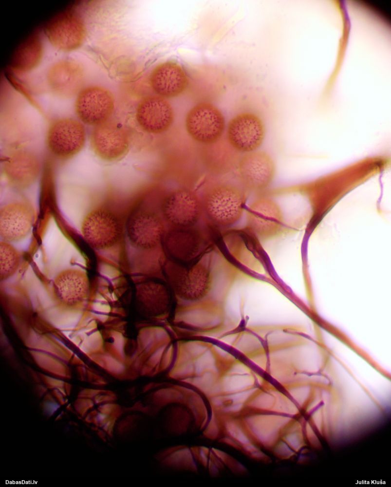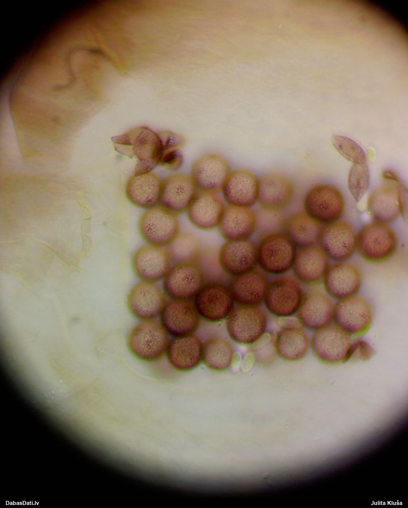 Sporas izskatās ļoti gaišas, varbūt nenobriedušas. Es laikam pēc kāda laiciņa mēģinātu vēlreiz mikroskopēt. Tajā pašā laikā sporu izmēri priekš T.contorta ir pamazi (ja tipiski ir 11-14 mkm, te ir knapi 11 mkm)