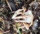 Satrūdējusi kritala mežā, nav dēļi. Iespējams, egle, jauktu koku mežs.