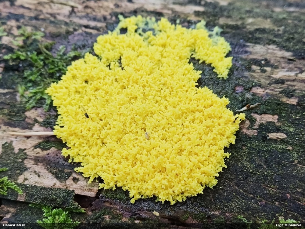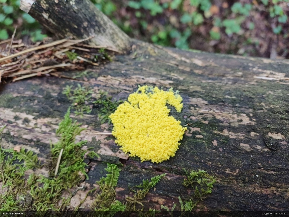 Šobrīd divas versijas - Physarum psittacinum un P.braunianum. Bez paraudziņa te skaidrīzā netiks, bet biotops interesants