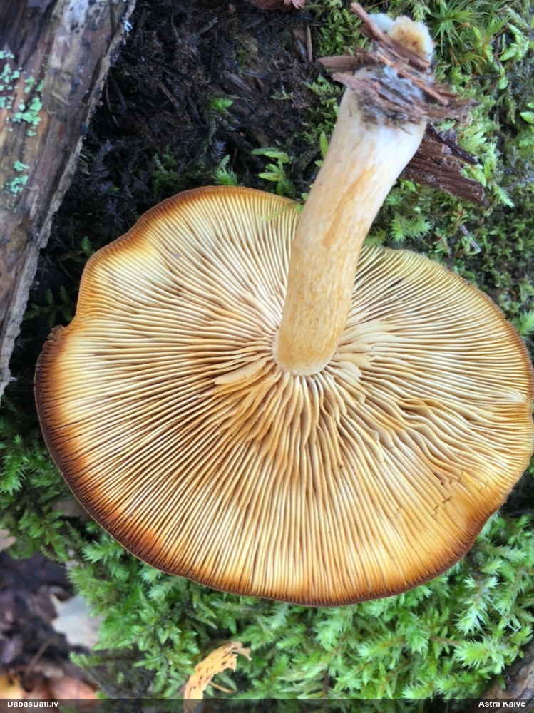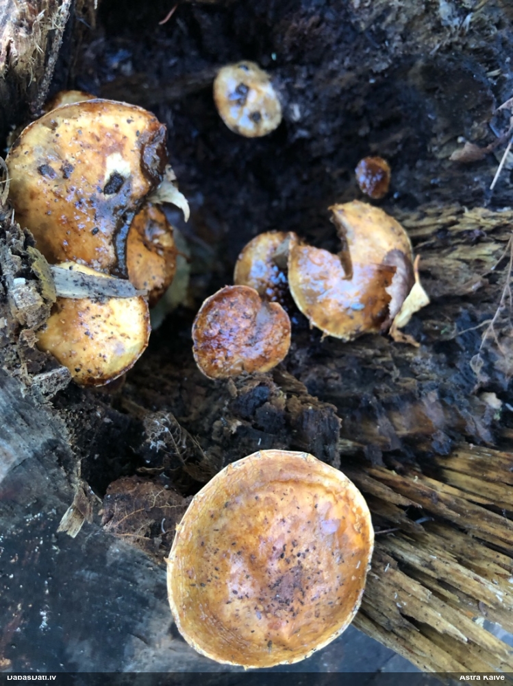 Liels paldies par paraugu! Mikroskopēju, viss kārtībā, kapilīcijs ir un suga pareiza. :) Un kā jau ir gadījies - tikko saņemu un apskatu paraugu, tā uzreiz ekspedīcijā izdodas atrast arī pašai (1 gab. augļķermeni :D). Ir pilnīgi droši, Raivo, bez Tava atraduma es arī nebūtu atradusi, jo uzmanību pievērsu, ka egle bija tieši tāda pati - slīpa un melna, tāpēc īpašs paldies par biotopa un substrāta bildēm! Kad ieraudzīju koka atbilstību, tad meklēju, kamēr atradu. :)