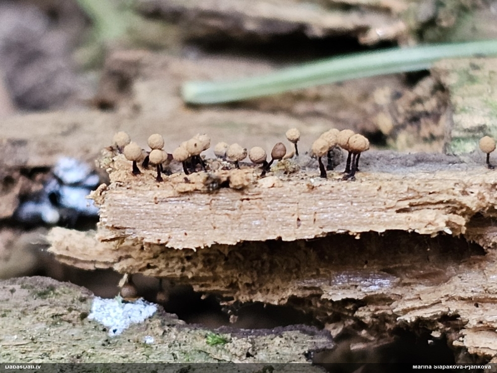 Cukurīte (Didymium) vai pumpurīte (Physarum)? Man galviņas virsma šķiet vairāk kā cukurītei, bet uz sēnes .. pieredze ar pumpurītēm.