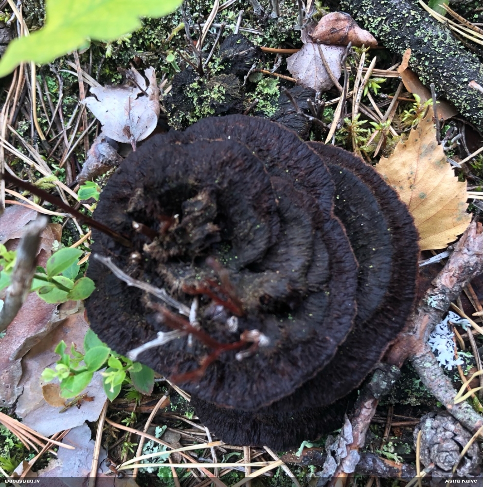 Liels paldies par paraugu! Mikroskopēju, viss kārtībā, kapilīcijs ir un suga pareiza. :) Un kā jau ir gadījies - tikko saņemu un apskatu paraugu, tā uzreiz ekspedīcijā izdodas atrast arī pašai (1 gab. augļķermeni :D). Ir pilnīgi droši, Raivo, bez Tava atraduma es arī nebūtu atradusi, jo uzmanību pievērsu, ka egle bija tieši tāda pati - slīpa un melna, tāpēc īpašs paldies par biotopa un substrāta bildēm! Kad ieraudzīju koka atbilstību, tad meklēju, kamēr atradu. :)