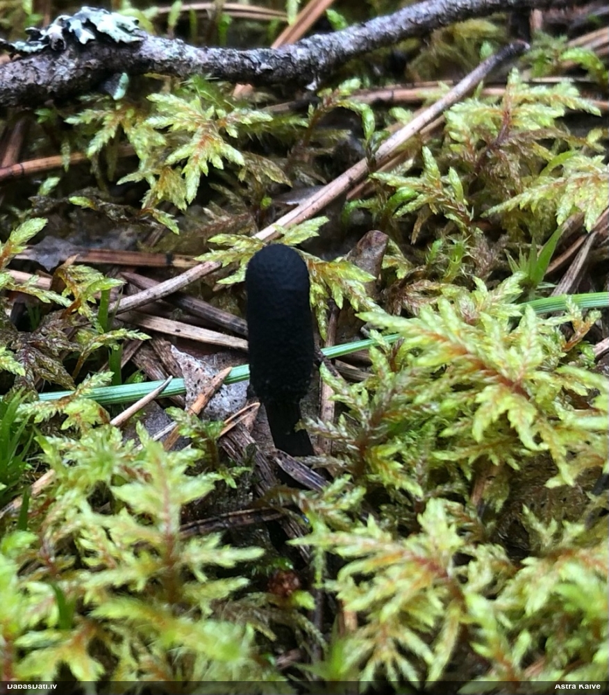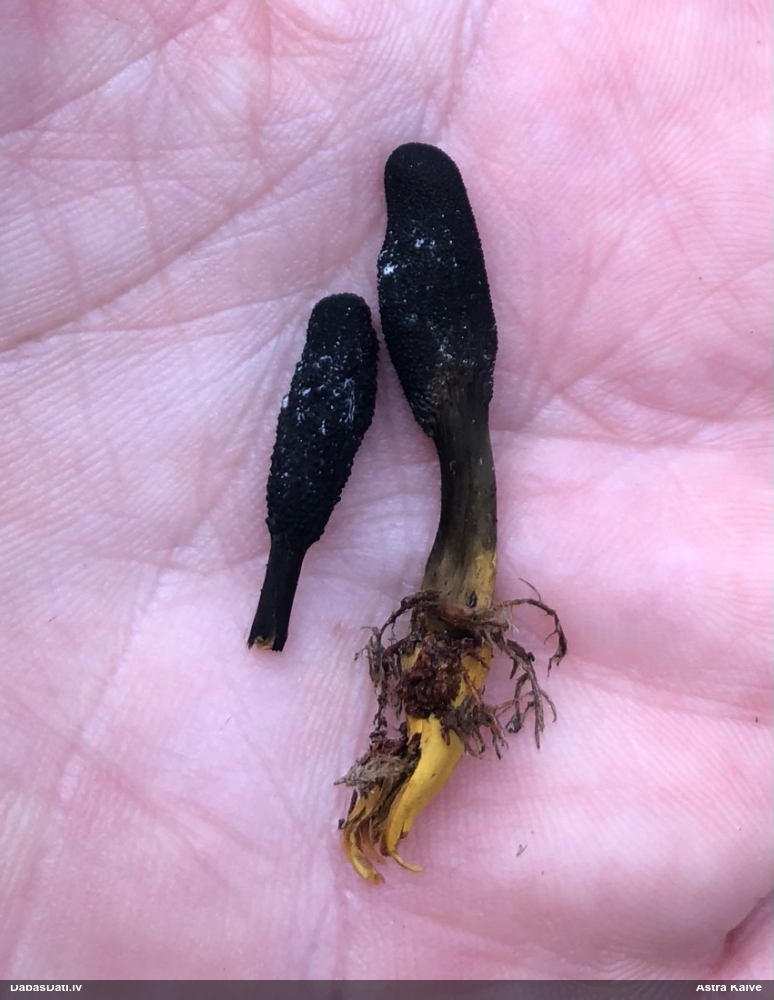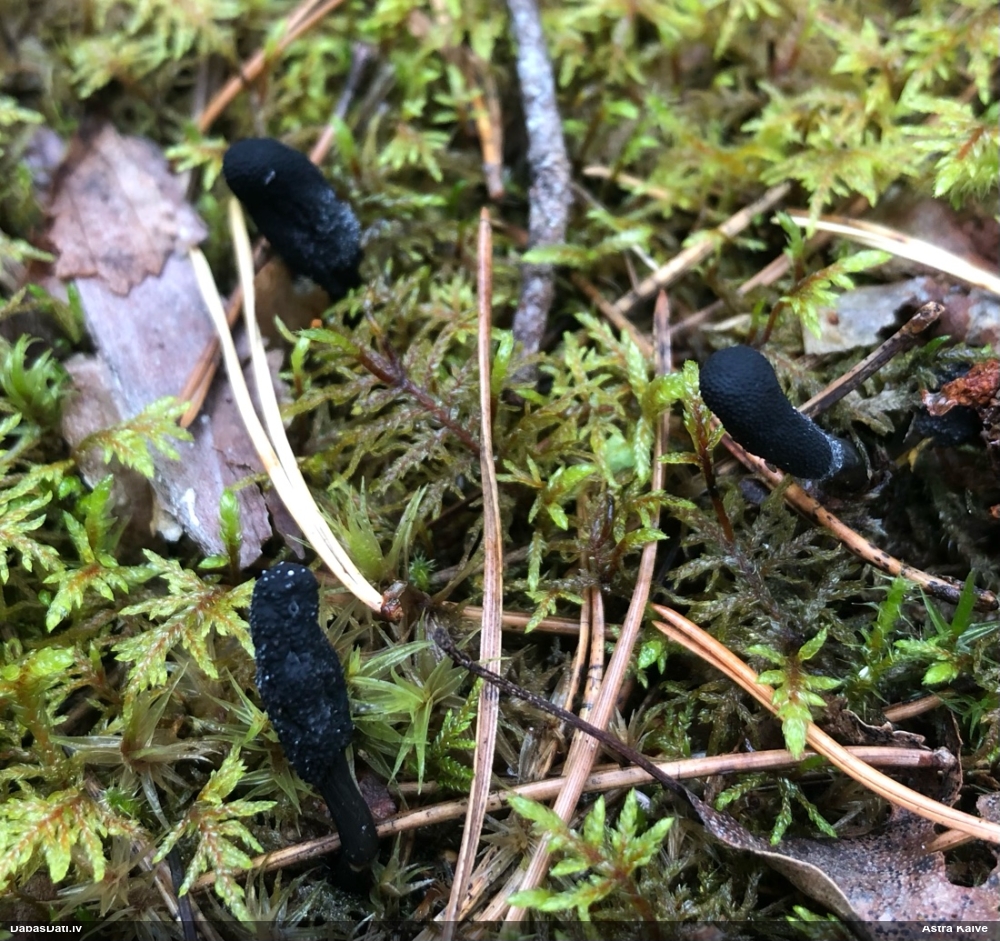 Vai tik nebūs medainā bumbulīte? Augļķermeņi vertikāli izstiepti, sporu mākonis ciešā klājienā.