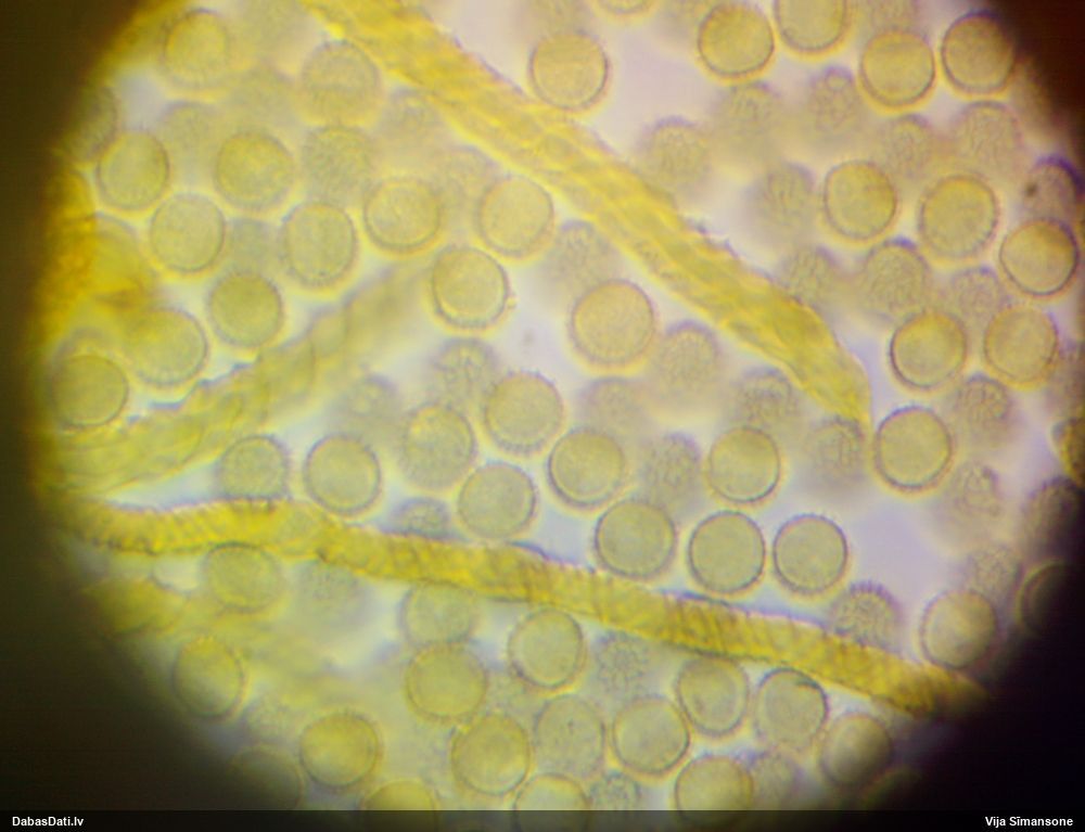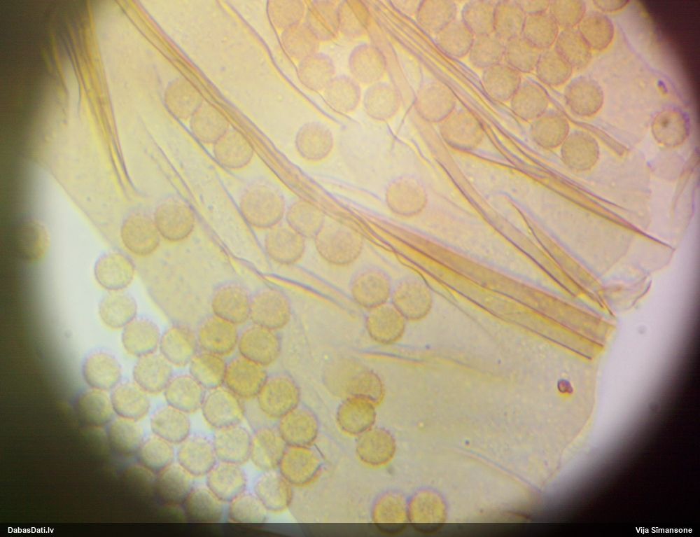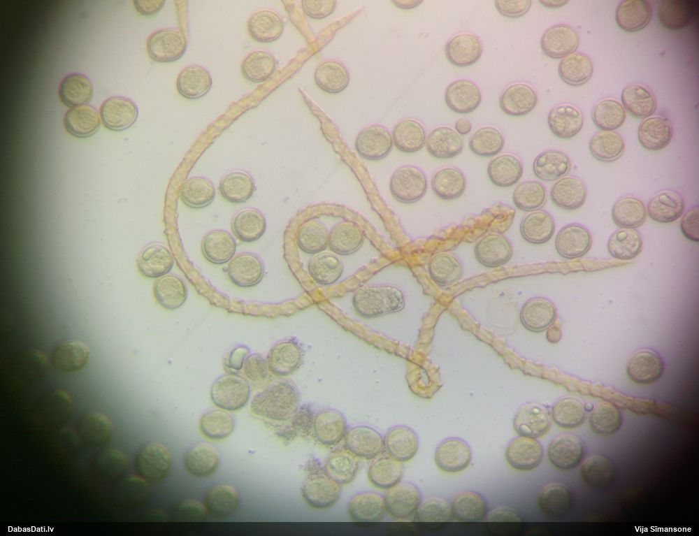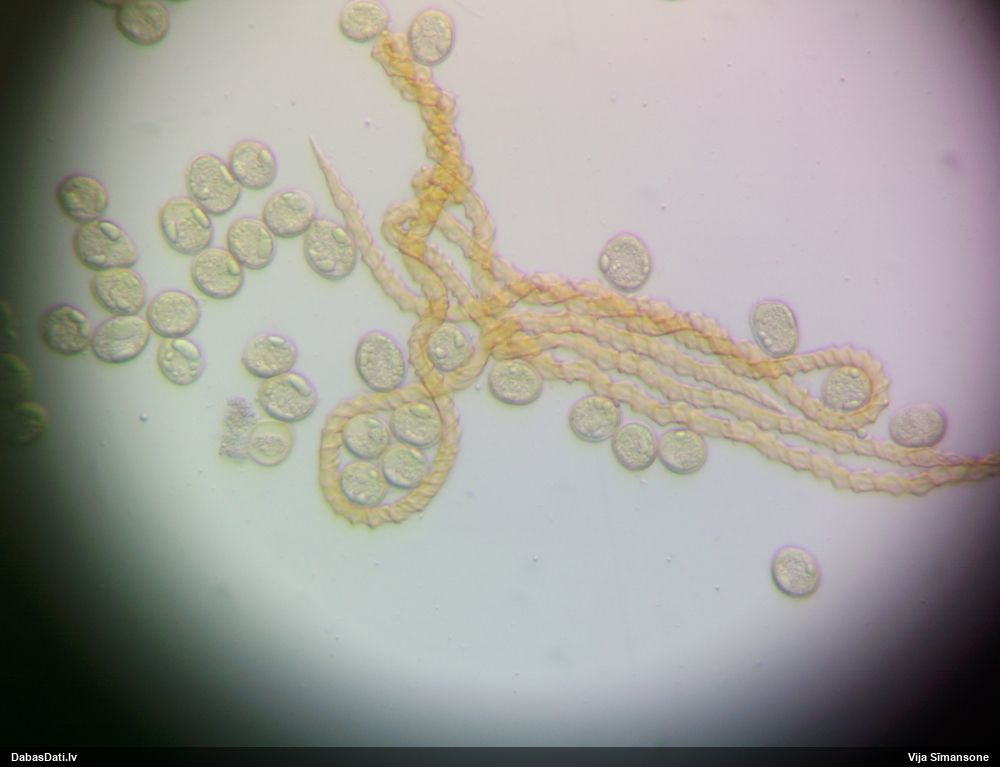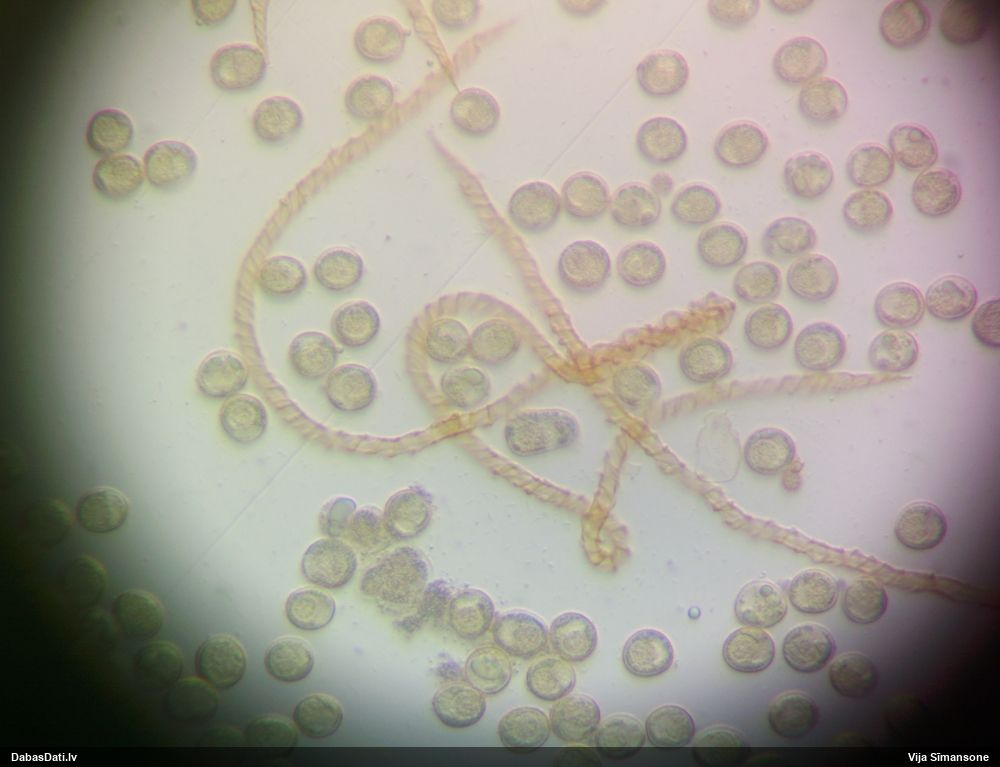 Sporas izskatās ļoti gaišas, varbūt nenobriedušas. Es laikam pēc kāda laiciņa mēģinātu vēlreiz mikroskopēt. Tajā pašā laikā sporu izmēri priekš T.contorta ir pamazi (ja tipiski ir 11-14 mkm, te ir knapi 11 mkm)