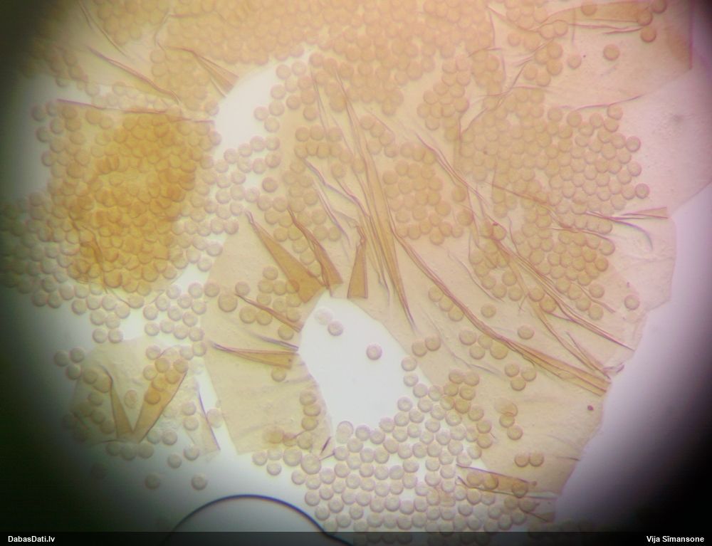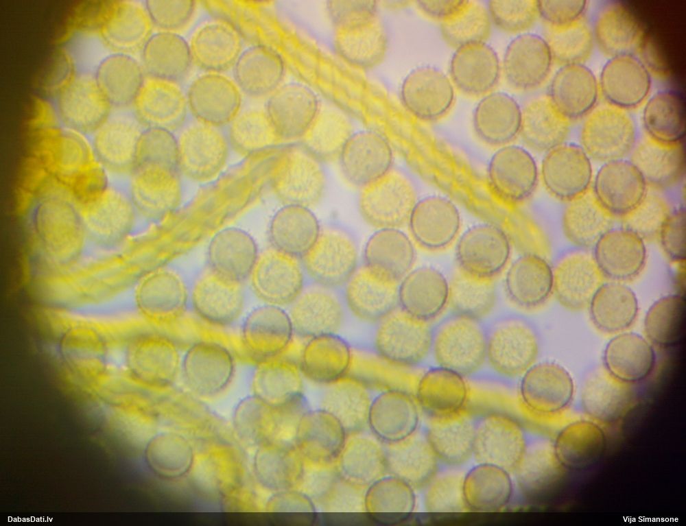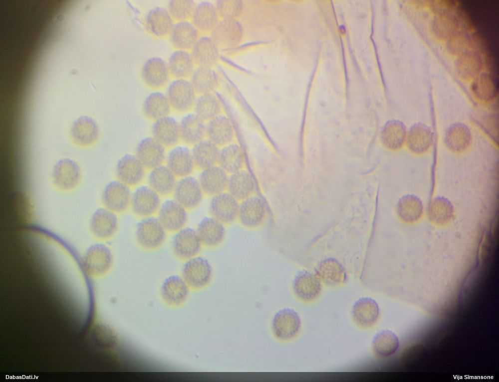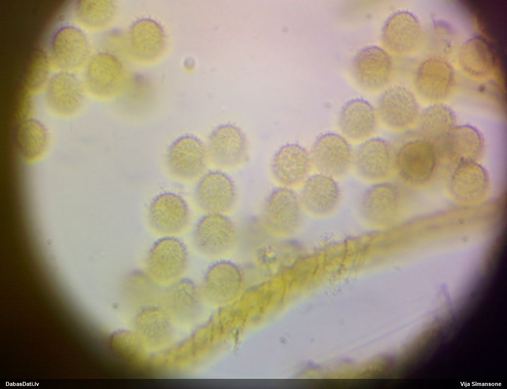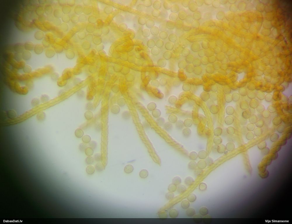 Sporas izskatās ļoti gaišas, varbūt nenobriedušas. Es laikam pēc kāda laiciņa mēģinātu vēlreiz mikroskopēt. Tajā pašā laikā sporu izmēri priekš T.contorta ir pamazi (ja tipiski ir 11-14 mkm, te ir knapi 11 mkm)