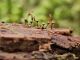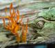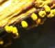 Man pēkšņi radās ideja - vai tur bija nu ļoti mitrs mikroklimats, egle ar melnalksni? Hipotētiski tādas dzeltenas var būt Diachea muscorum. Te bilde ir mazliet līdzīga: https://fr.wikipedia.org/wiki/Fichier:Craterium_muscorum,_Trawscoed,_North_Wales,_Aug_2016_-_Flickr_-_janetgraham84.jpg